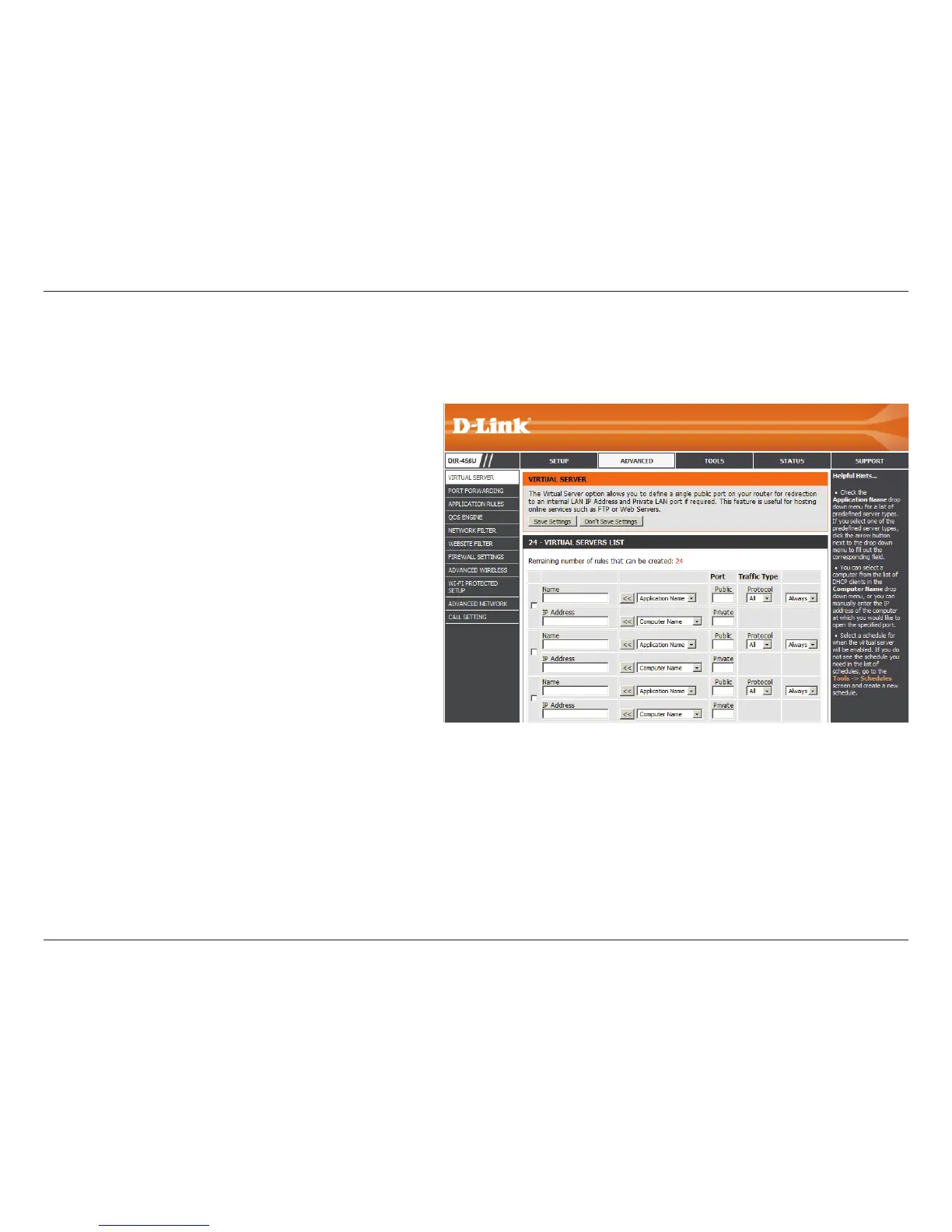 The device can be congured as a virtual server so that users can access services such as Web or FTP via the public (WAN) IP address