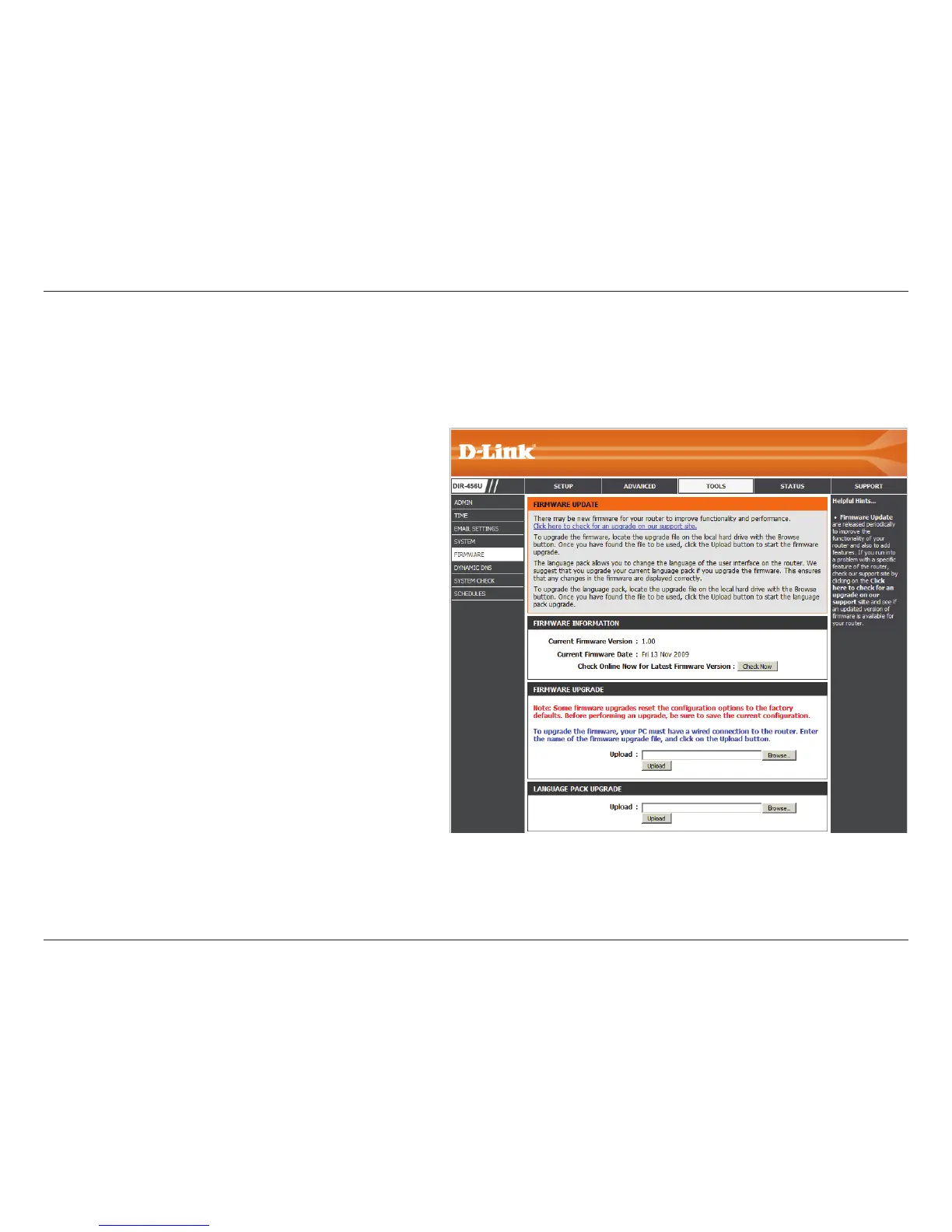 and then click Browse to select the le to be uploaded. Please check the D-Link support site for rmware updates at http://support.dlink.