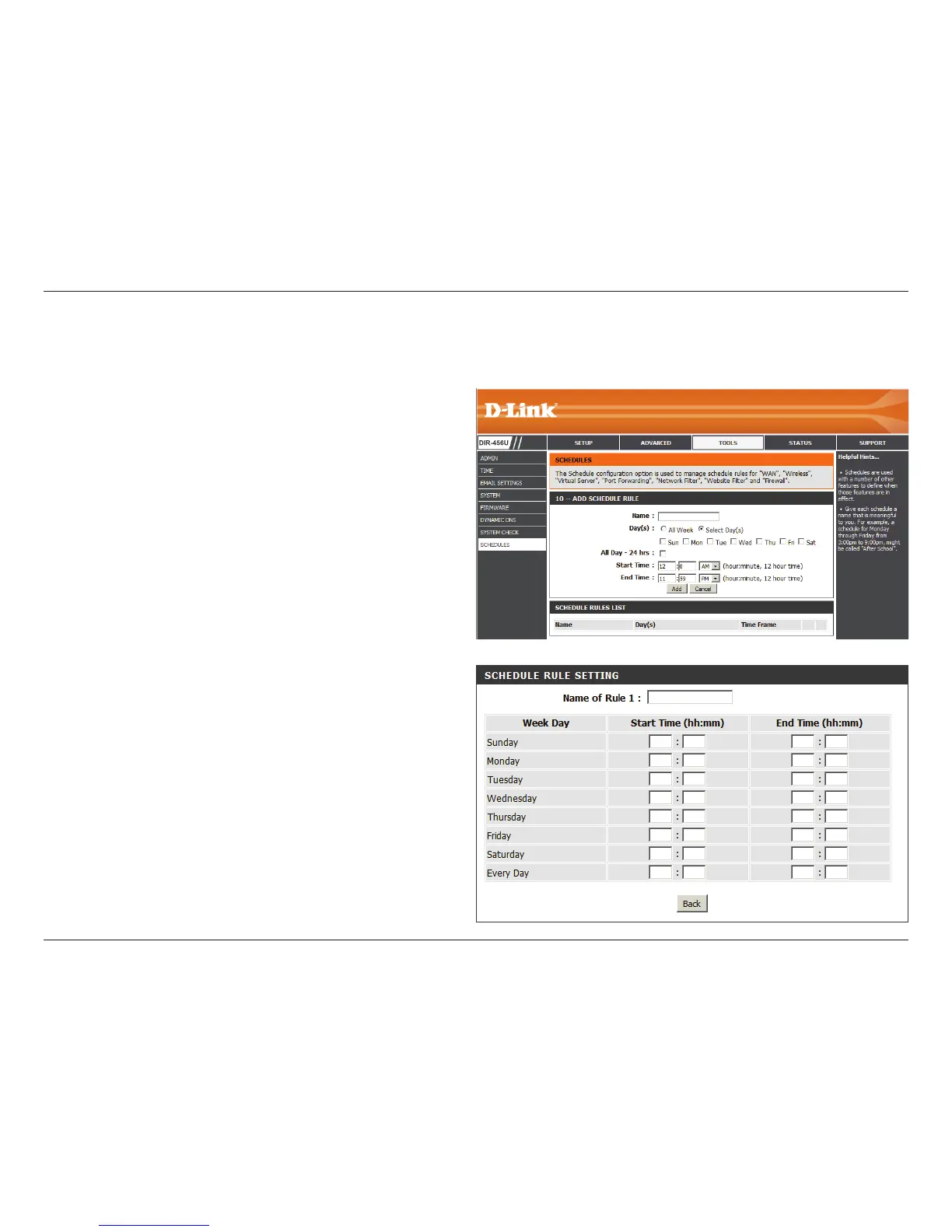 This section allows you to manage schedule rules for various rewall and parental control features.