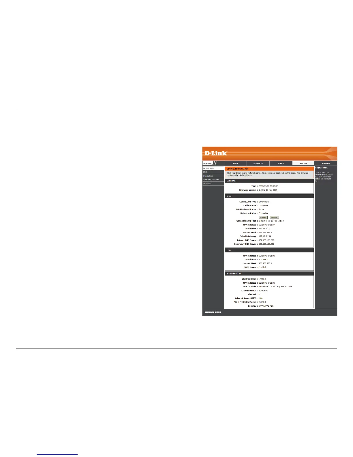 All of your Internet and network connection details are displayed on this page. The rmware version is also displayed here.