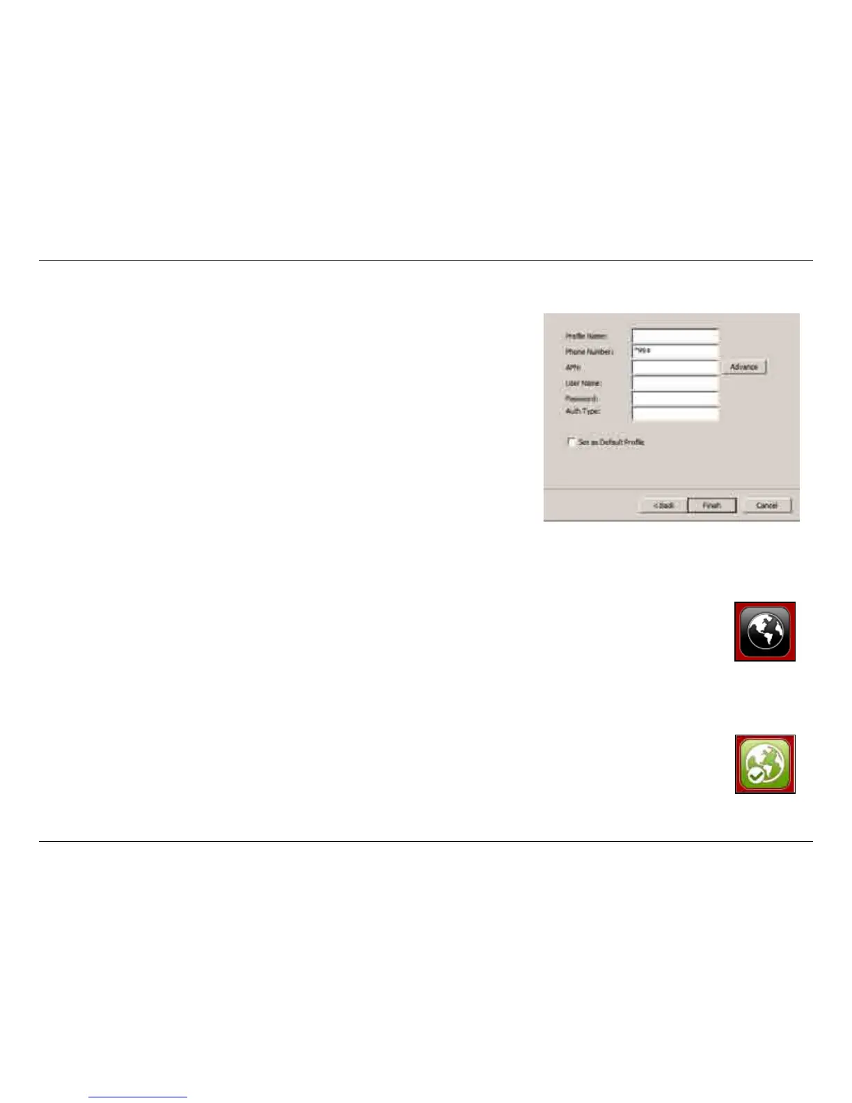 connect to the network via the default prole. After you are connected, the button will turn green with