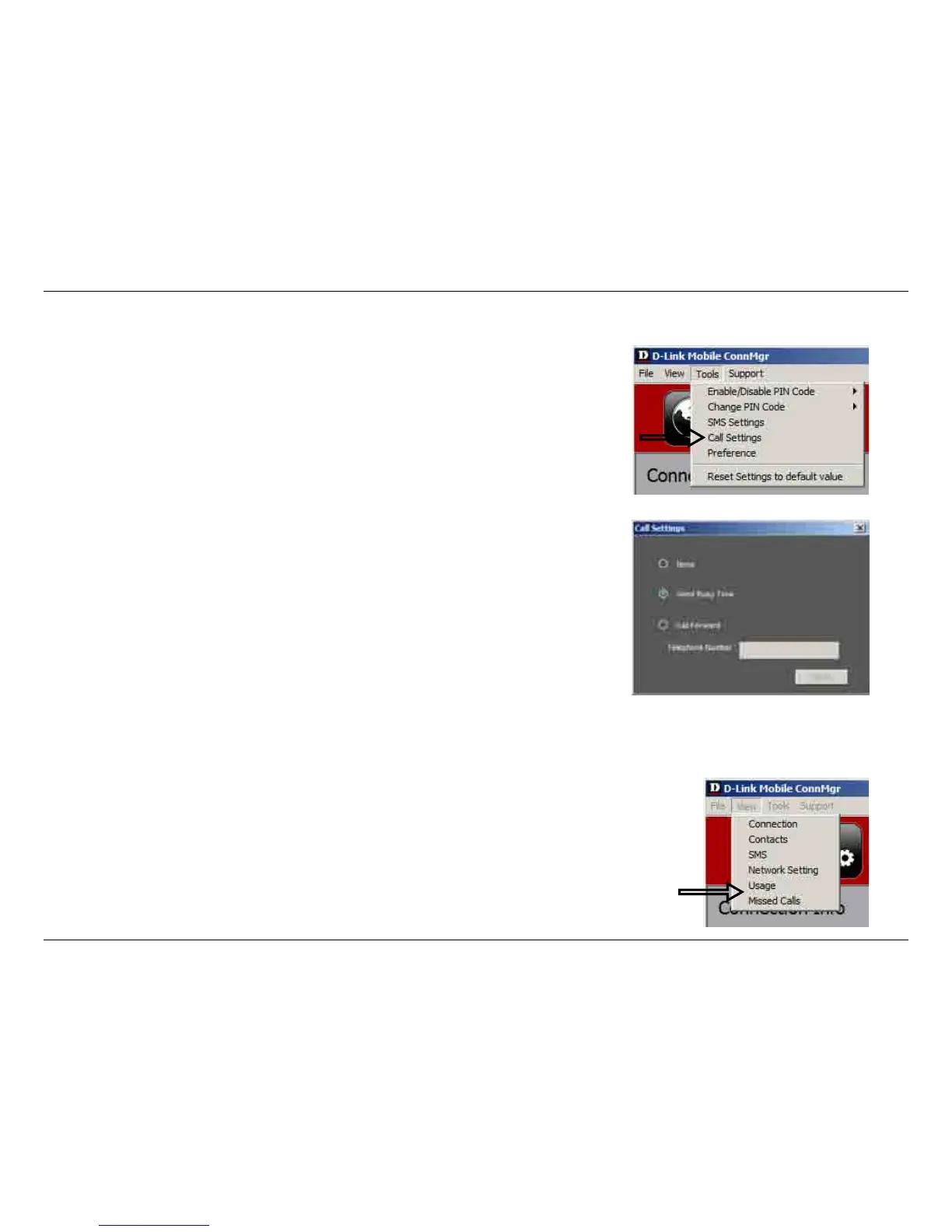 2. If the call setting is None or Send Busy Tone, D-Link Mobile Connection