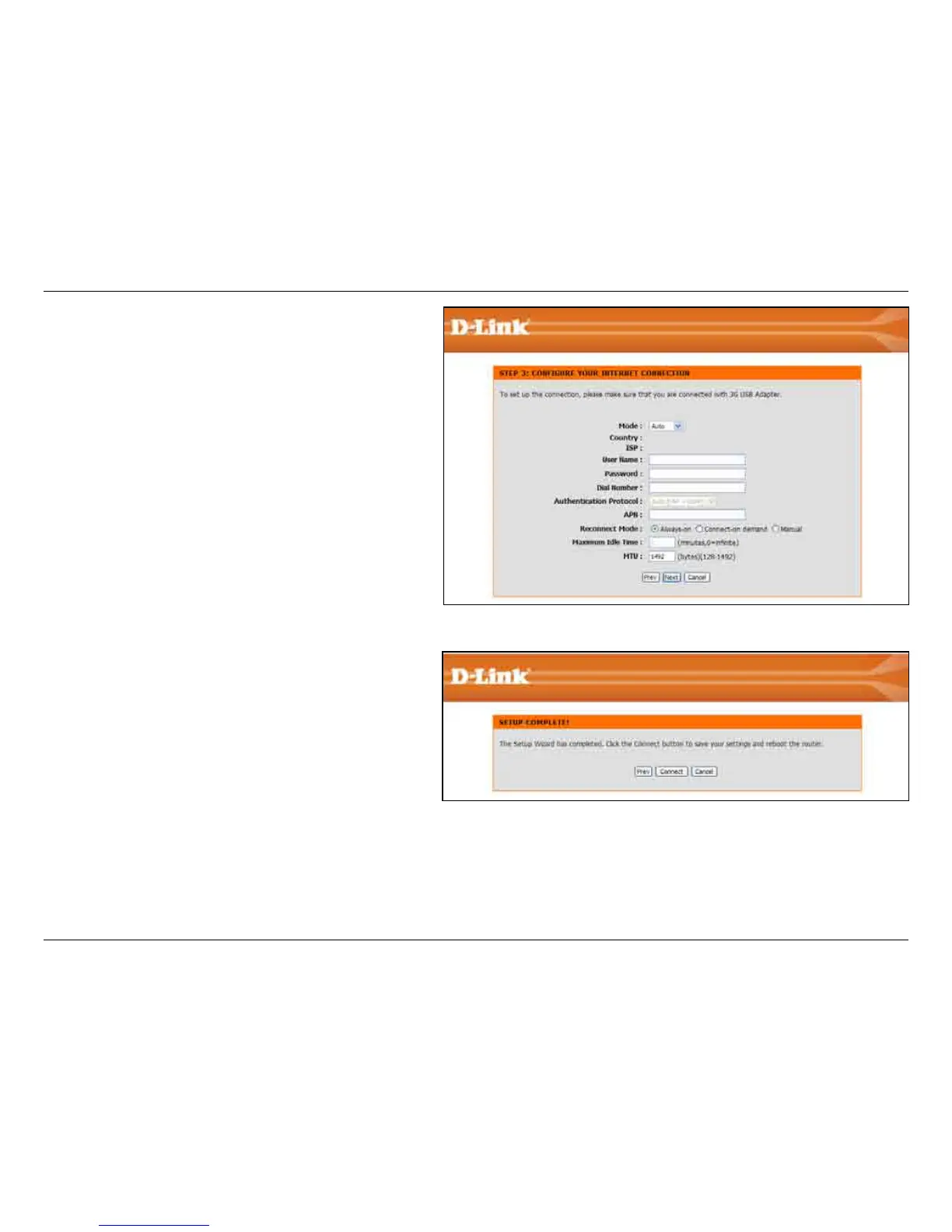 Congure your 3G Internet Connection settings and
