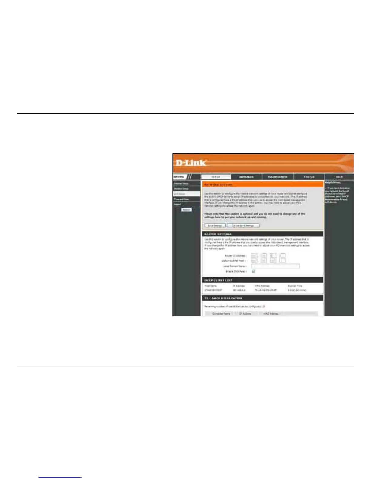 This section will allow you to change the local network settings of the router and to congure the DHCP settings.