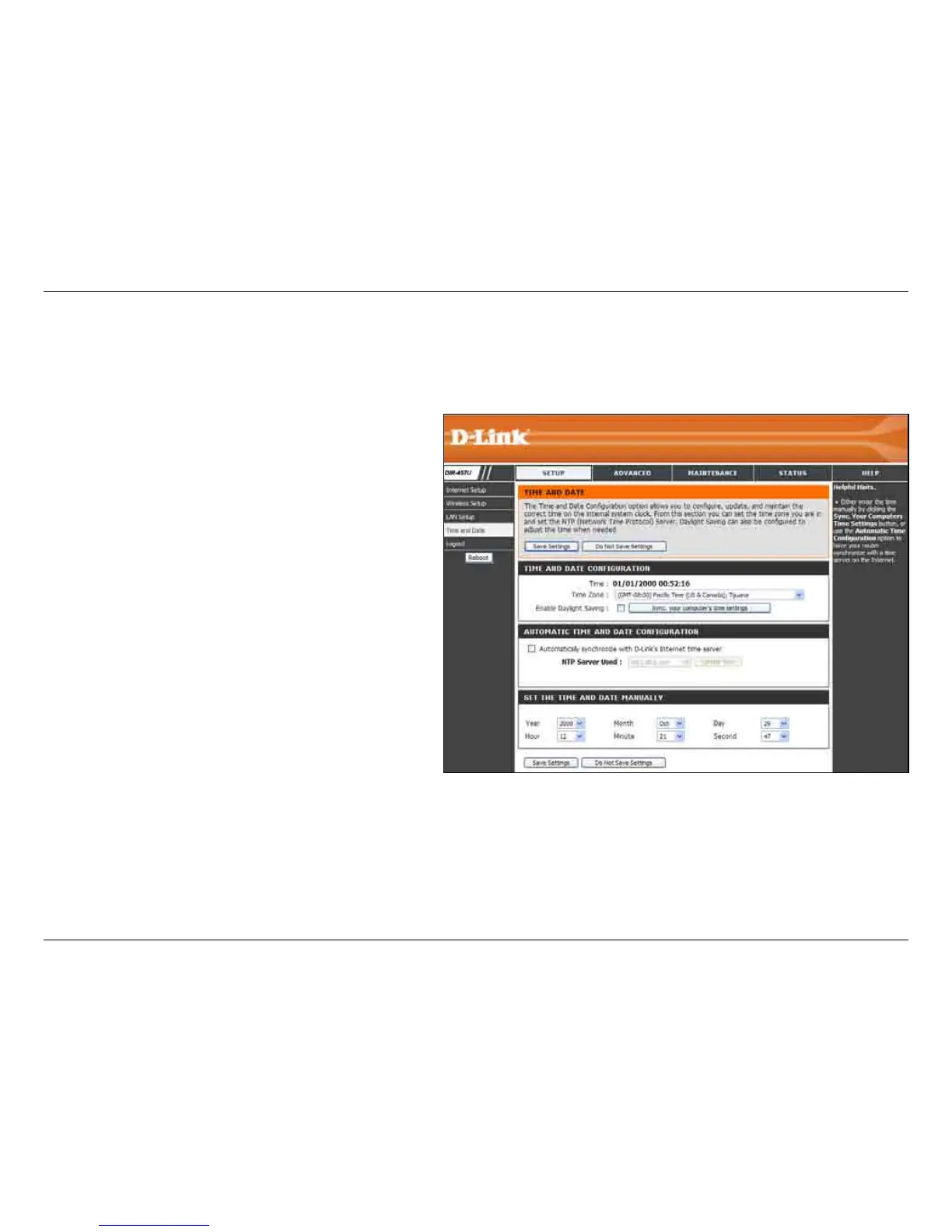 section you can set the time zone that you are in and set the Time Server. Daylight Saving can also be congured to automatically adjust