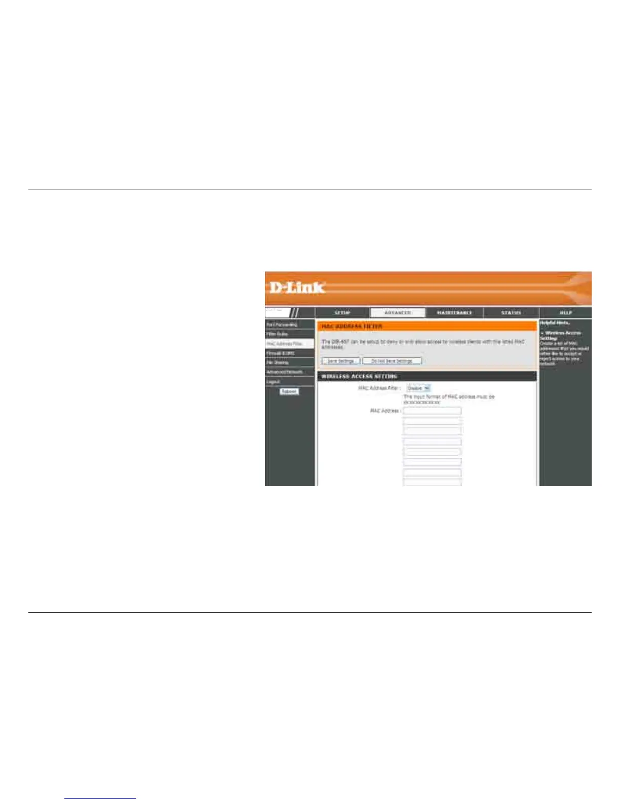 Use MAC (Media Access Control) Filters to allow or deny LAN (Local Area Network) computers by manually entering their MAC addresses