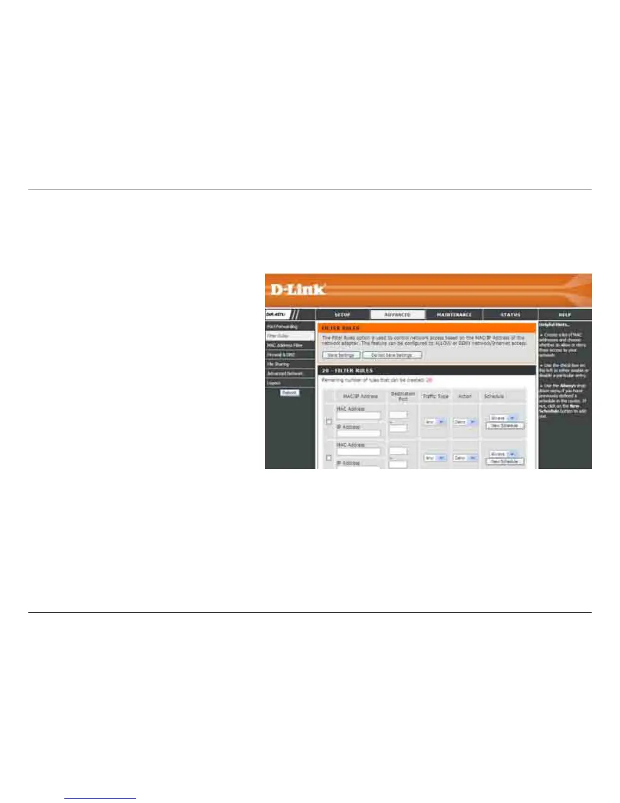 Use MAC (Media Access Control) Filters to allow or deny LAN (Local Area Network) computers by their MAC addresses from accessing