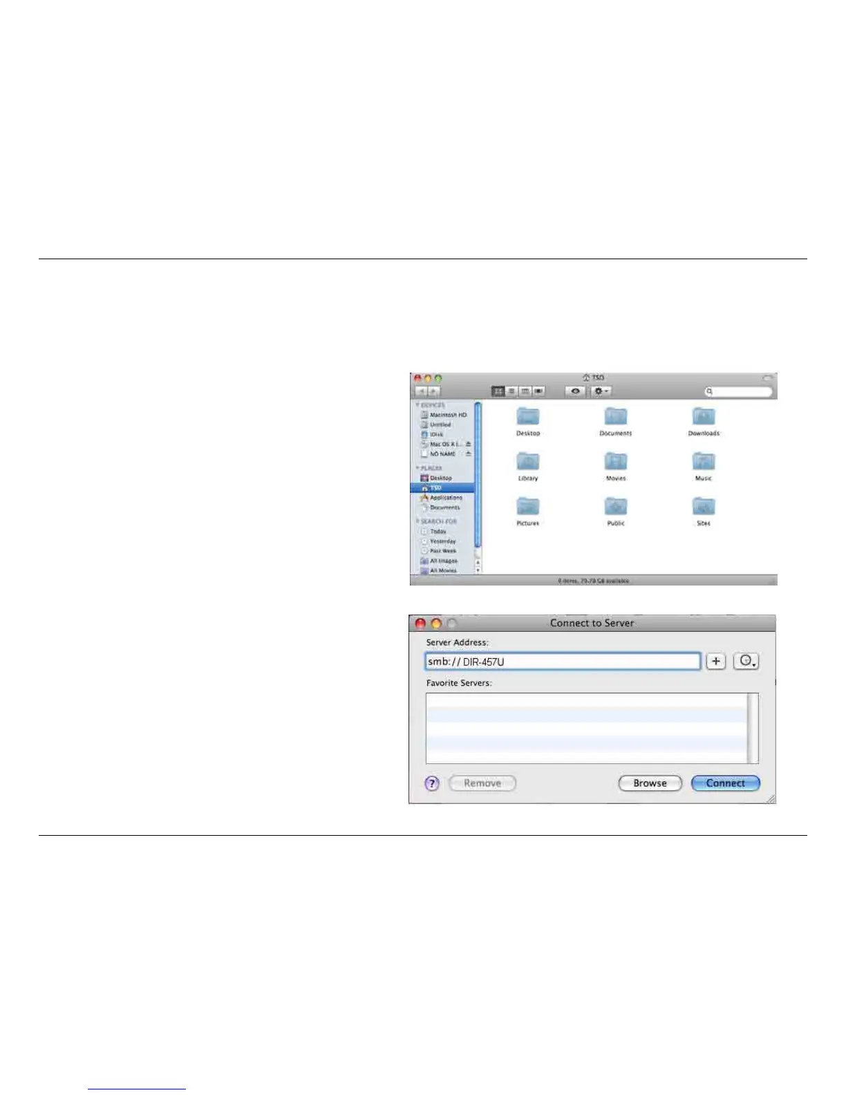 For accessing the shared folder in the router using Mac OS X, follow these steps to read or write the shared les.