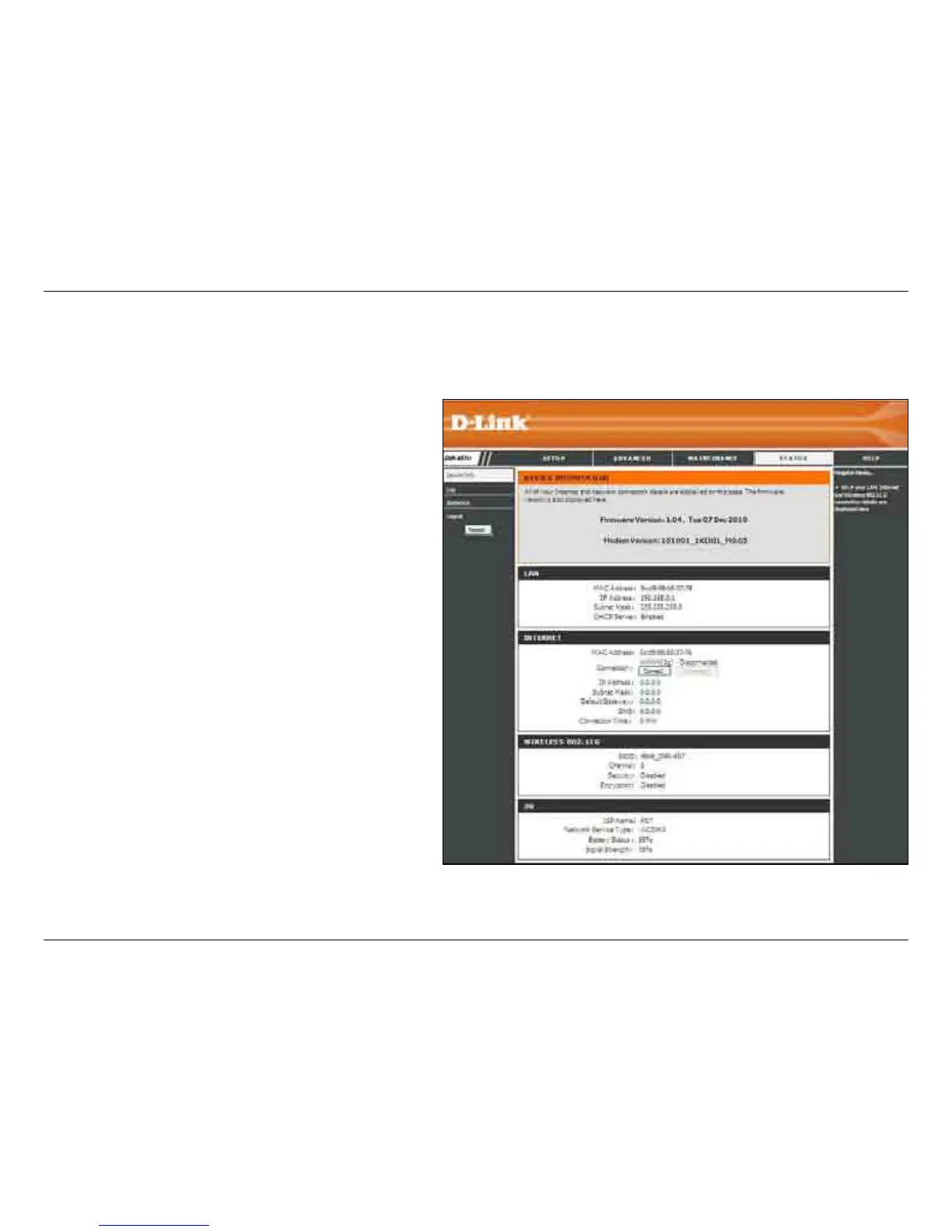 This page displays the current information about the DIR-457U and the rmware version.