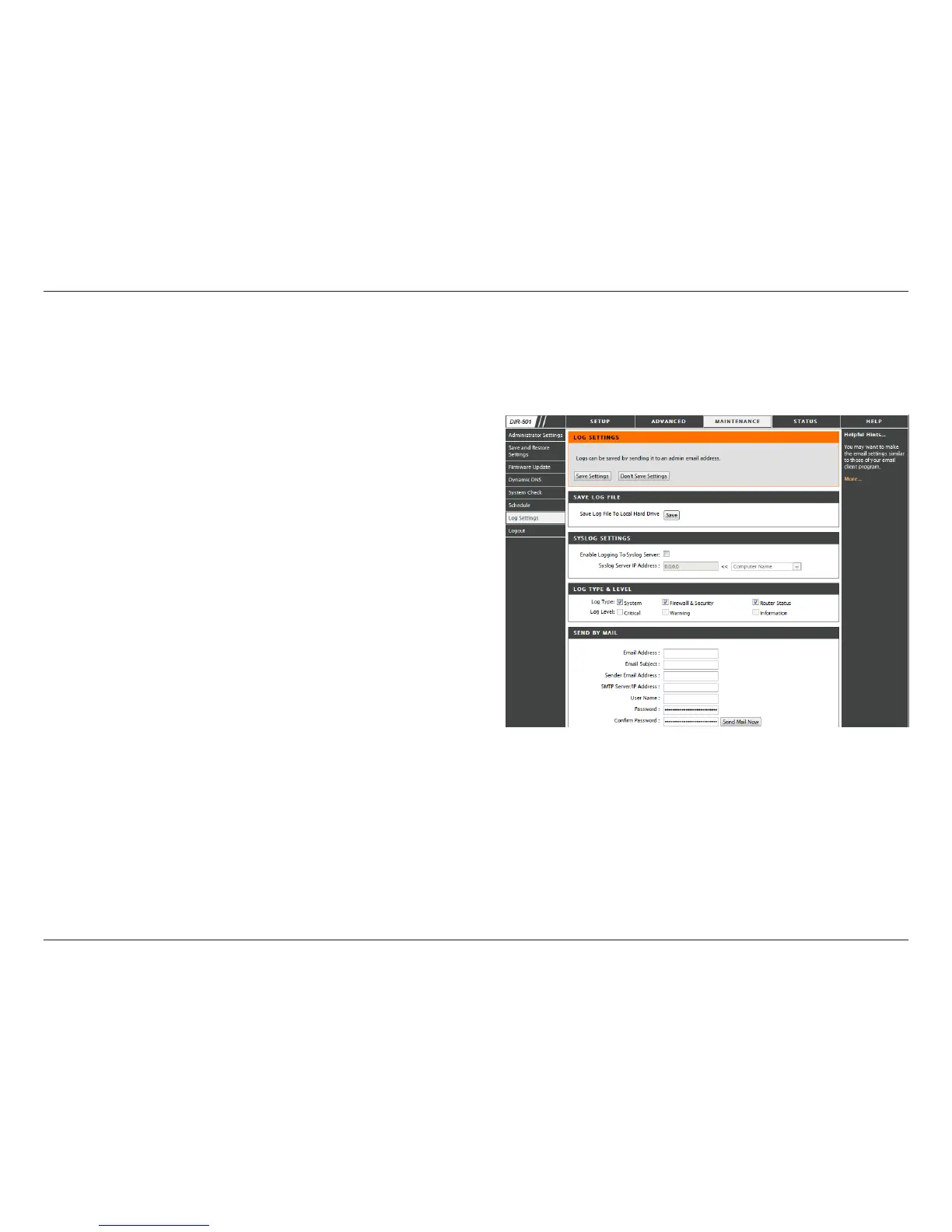 The system log displays chronological event log data specied by the router user. You may also save a simple text le