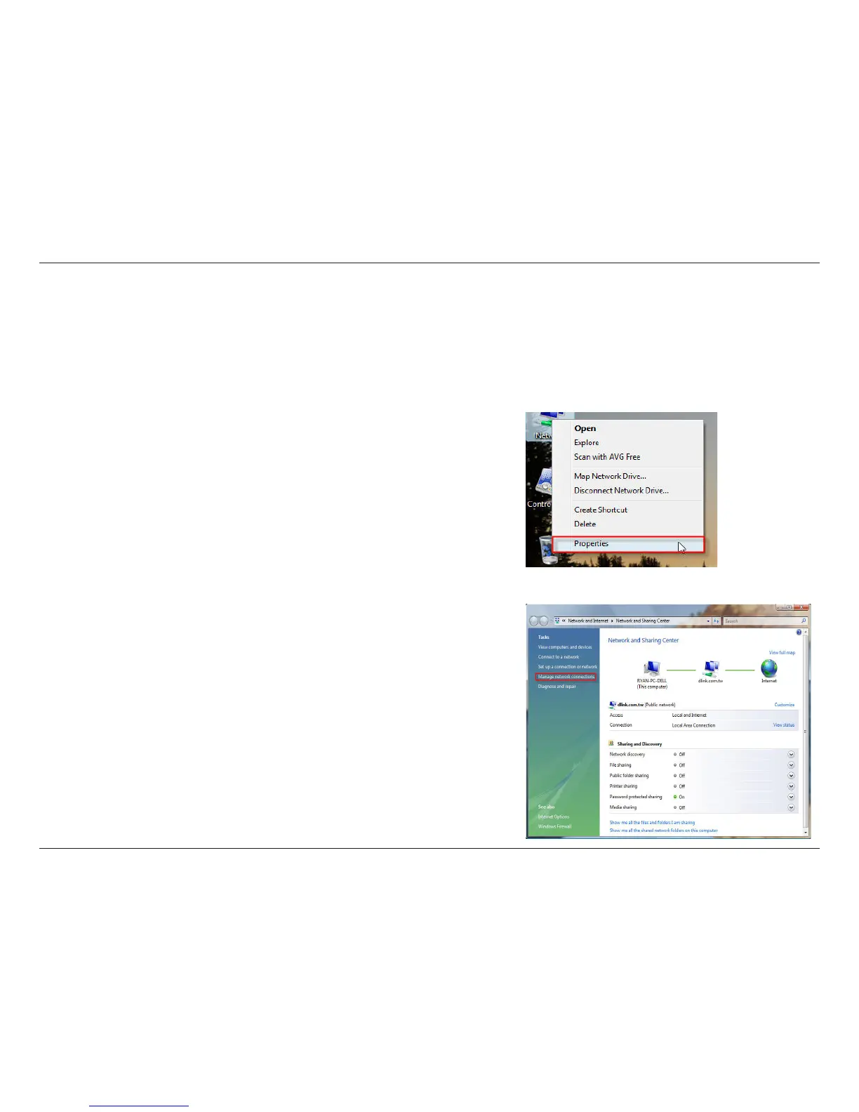 2. Click the Manage network connections link in the Network