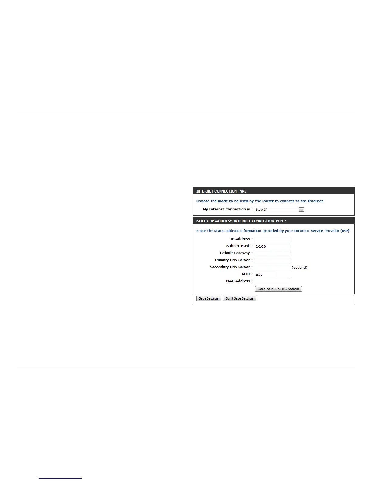 Select Static IP from the drop-down menu if all the Internet port’s IP information is provided to you by your ISP. You will need