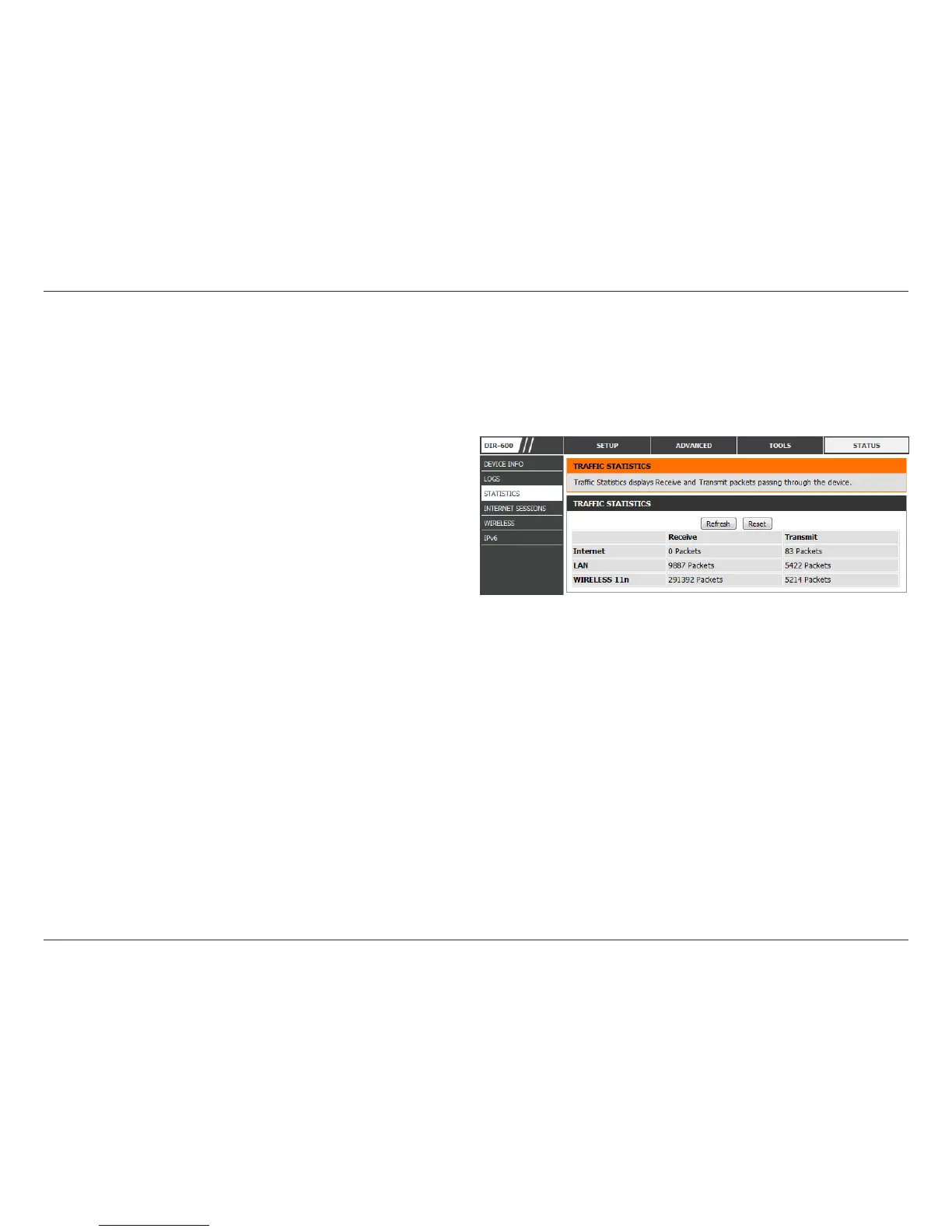 the WAN, LAN ports and the 802.11n/g (2.4GHz) wireless bands. The trac counter will reset if the device is rebooted.