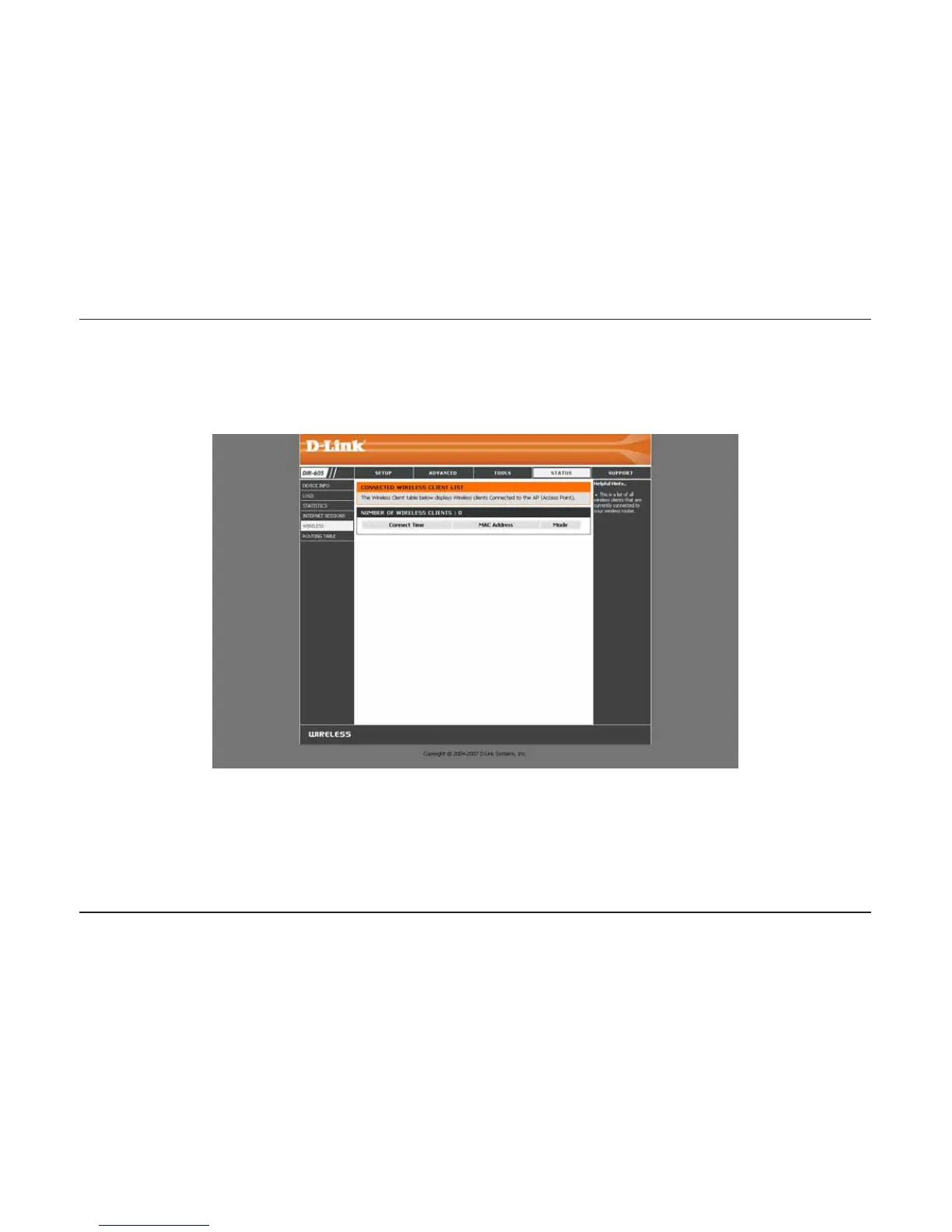 The wireless client table displays a list of current connected wireless clients. This table also displays the connection