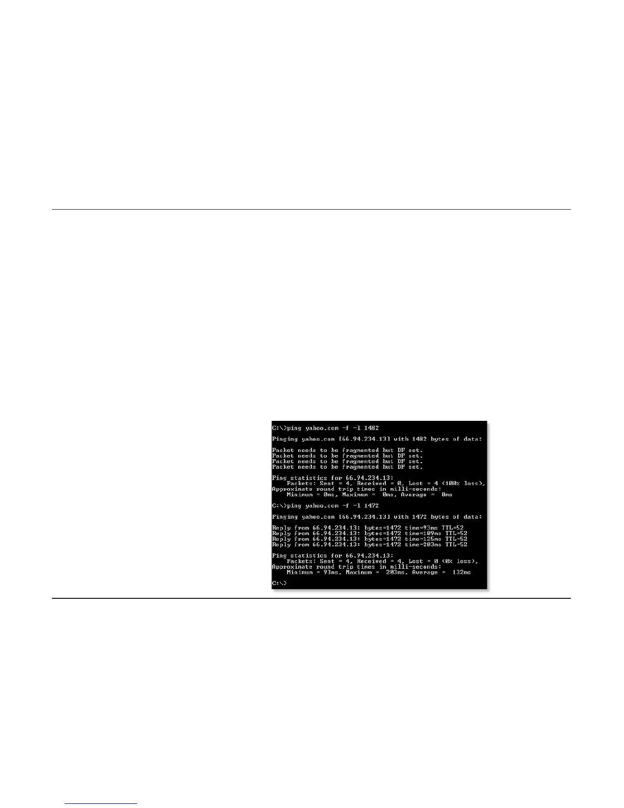 Example: ping yahoo.com -f -l 1472