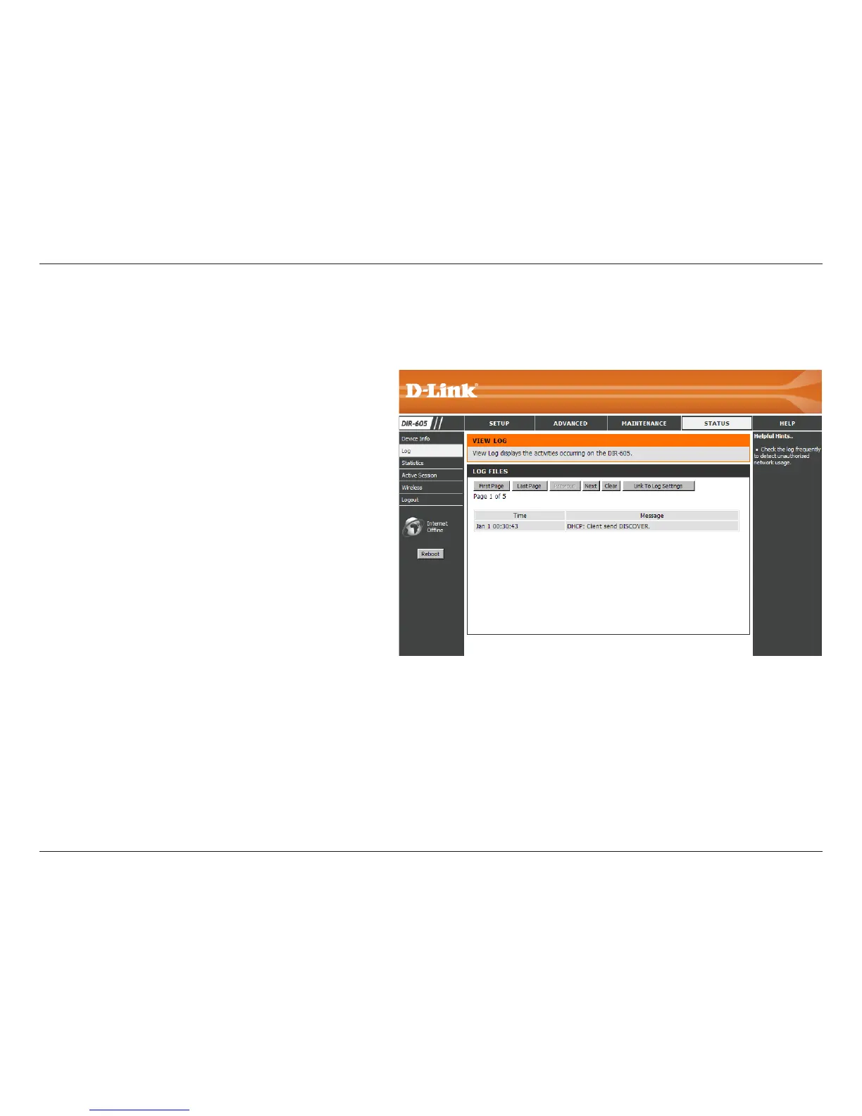 This window allows you to view a log of activities on the Router. This is especially helpful detecting unauthorized