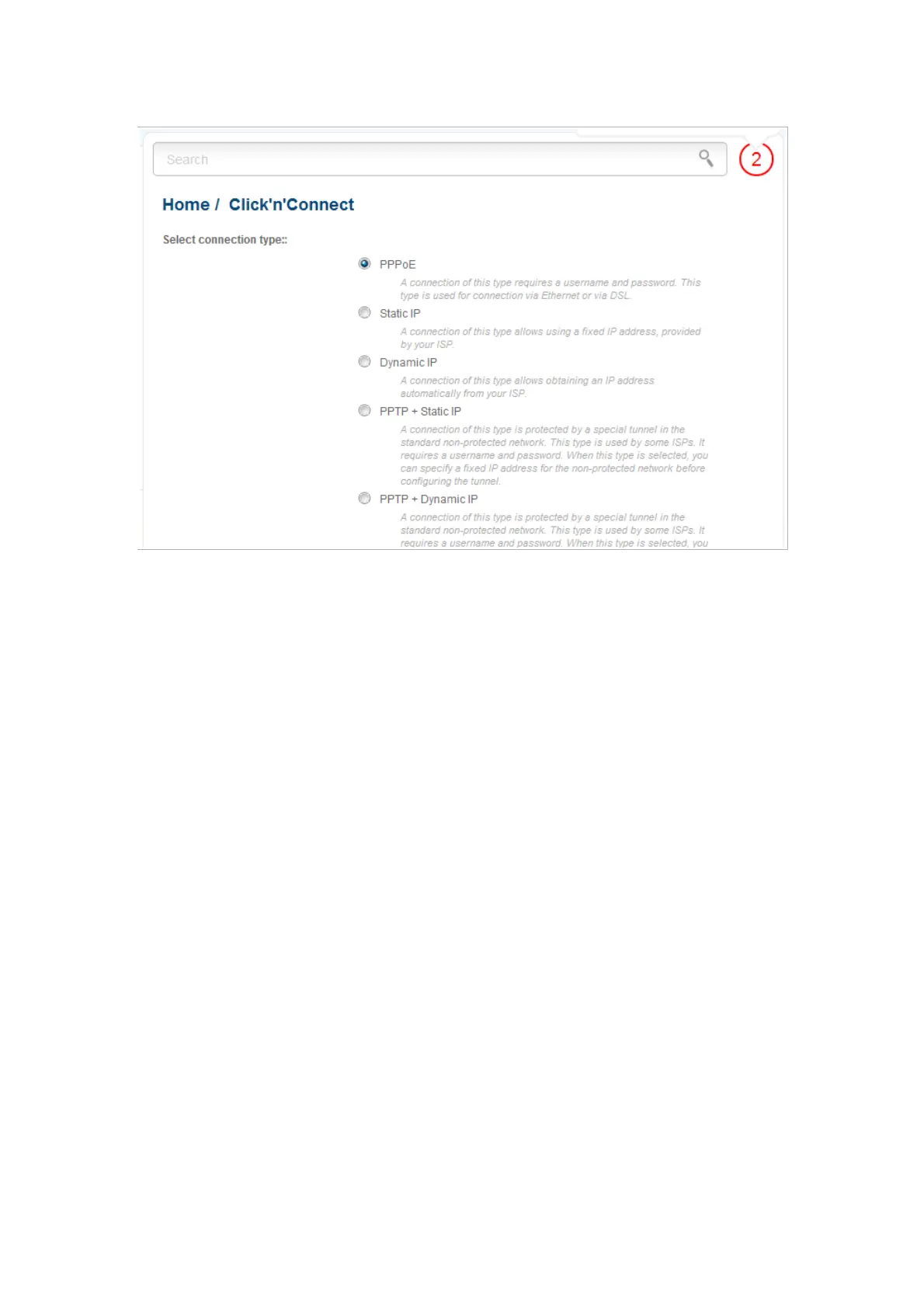Figure 24. The page for selecting the connection type.