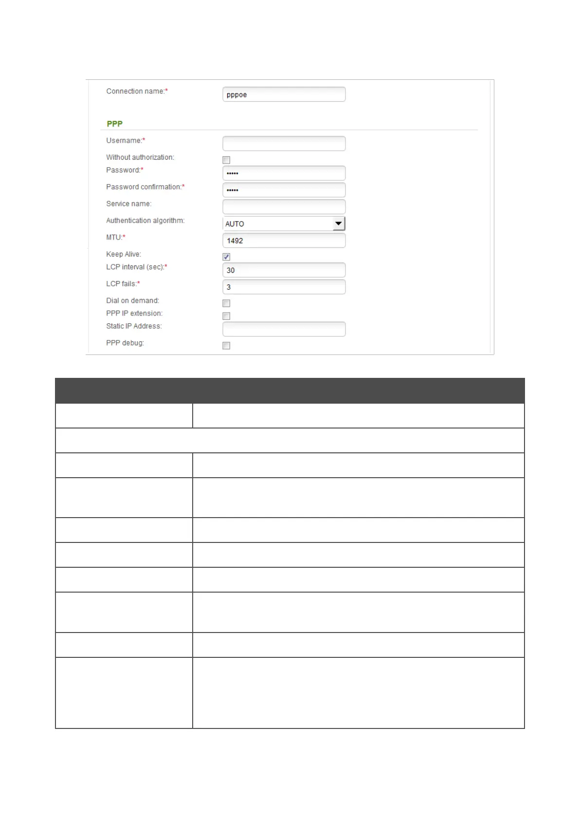 Figure 50. Configuring PPPoE + Dynamic IP WAN connection. The expert settings mode. The PPP section.
