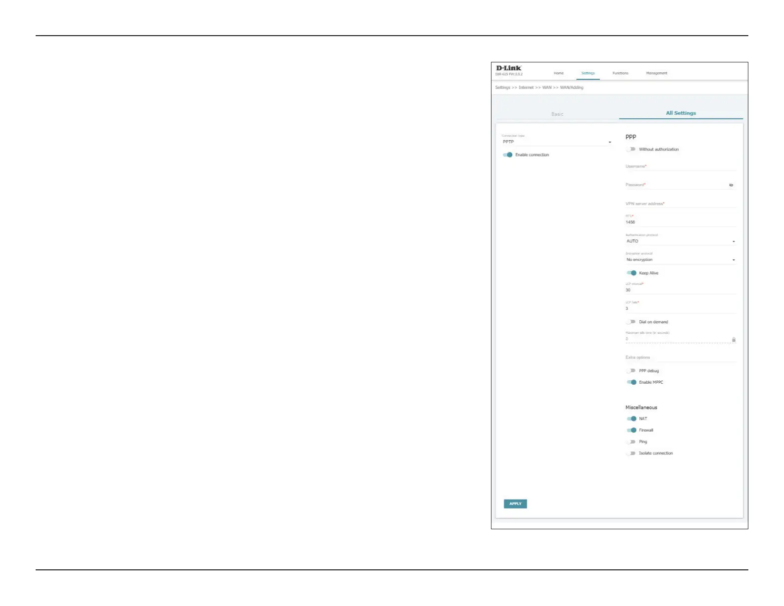Firewall: Toggle this switch to enable rewall functionality. This setting is