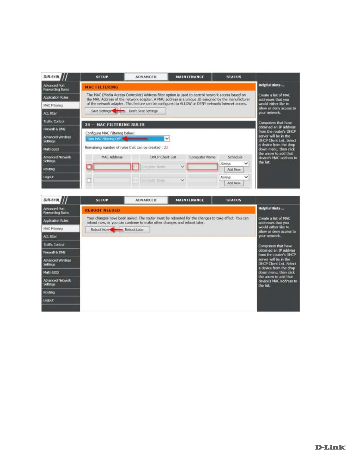 Turn MAC Filtering OFF