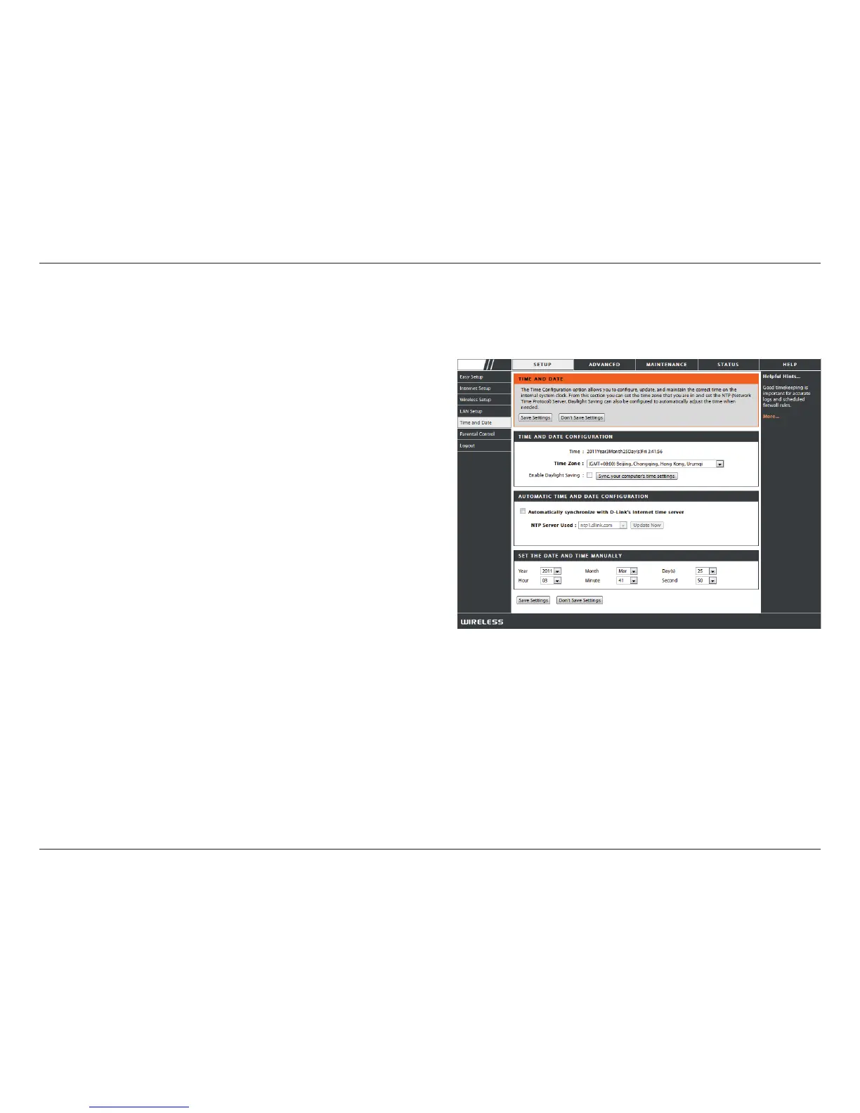 This section will allow you to congure, update, and maintain the correct time on the internal system clock.