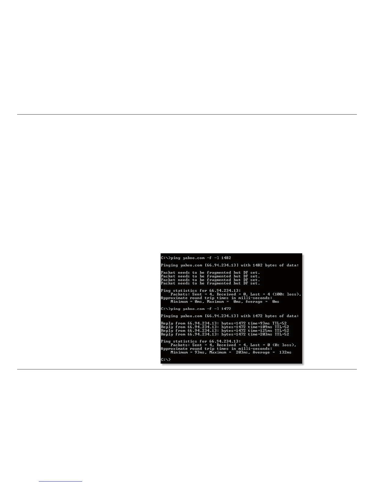 Example: ping yahoo.com -f -l 1472