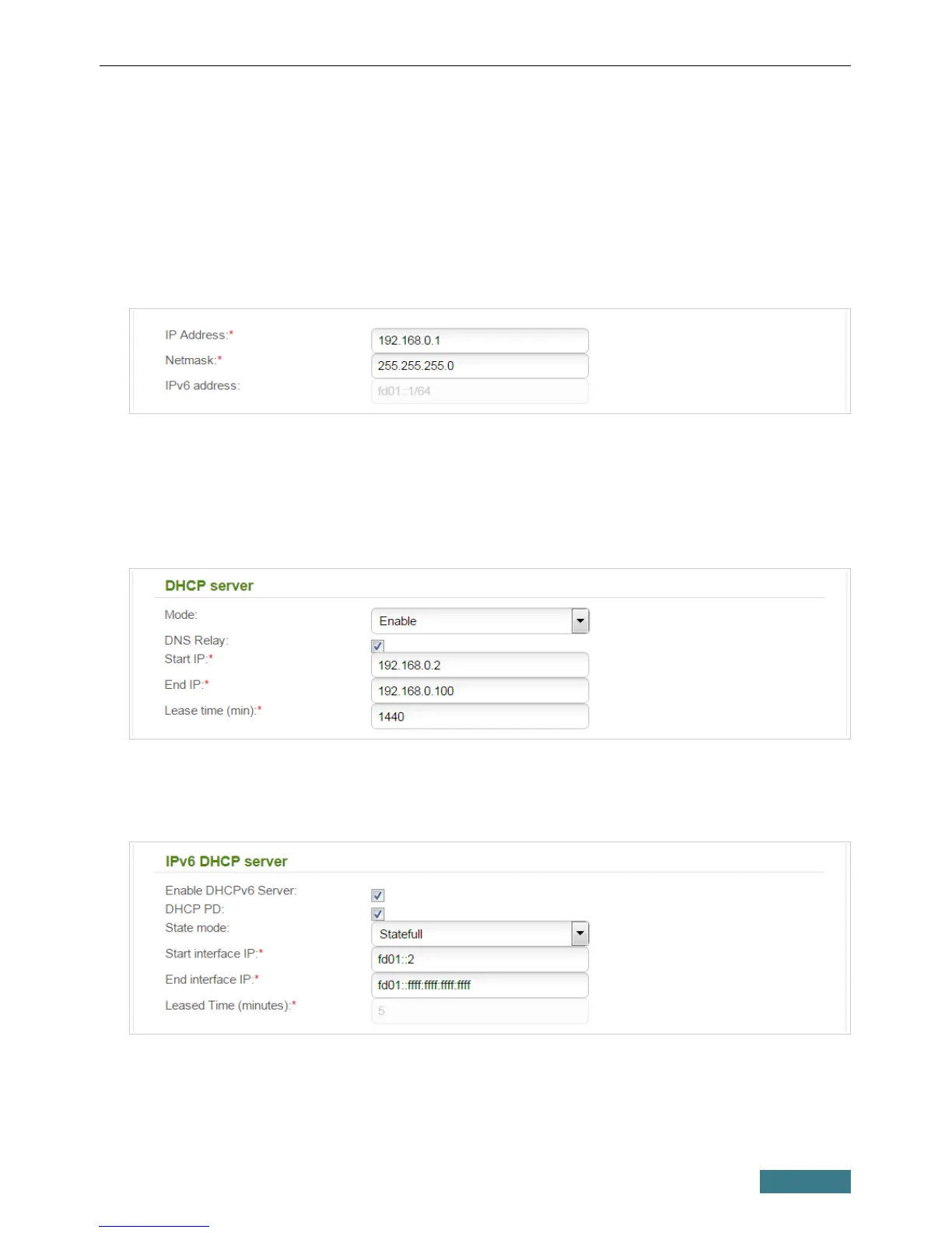DHCP server section.