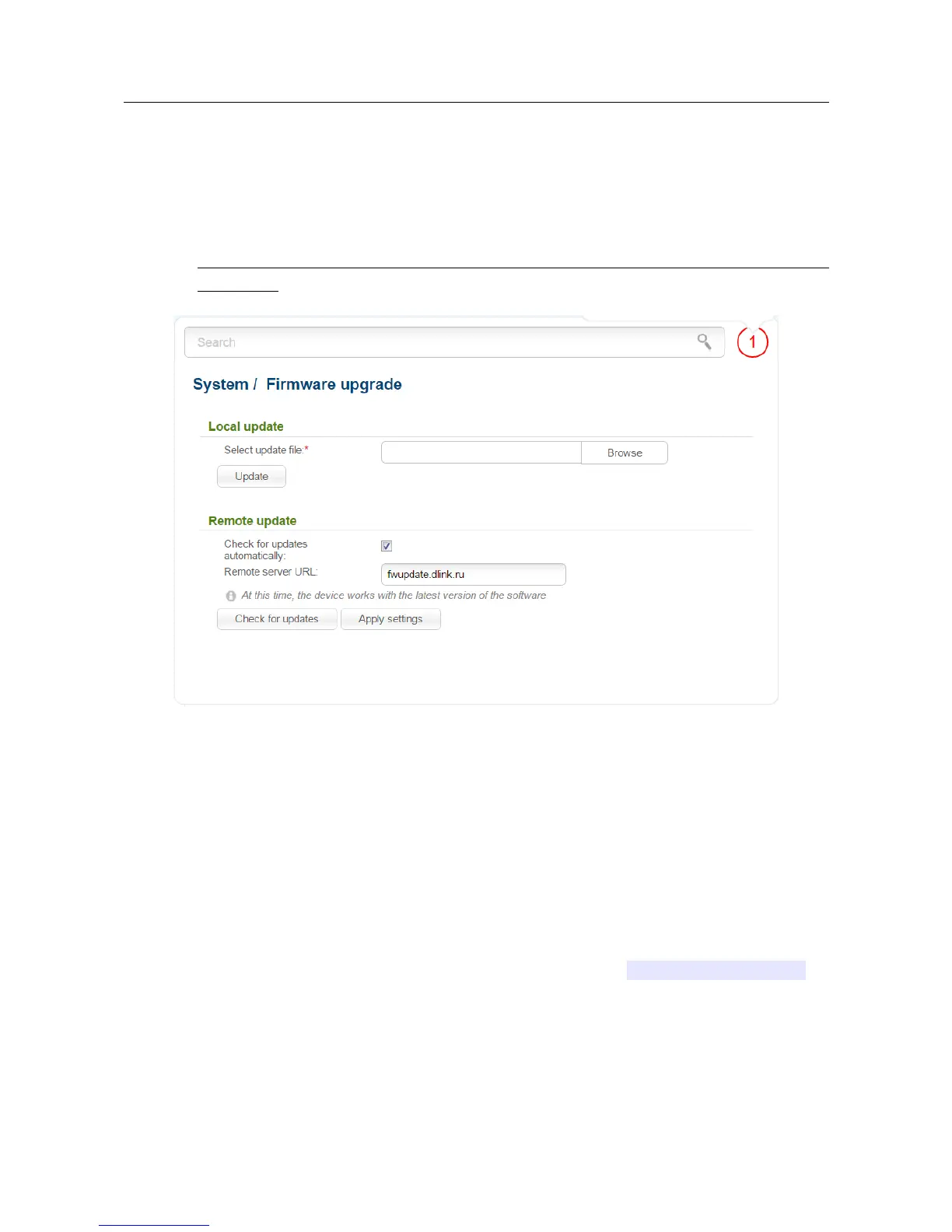 in the Remote server URL field, the D-Link update server address (fwupdate.dlink.ru) is