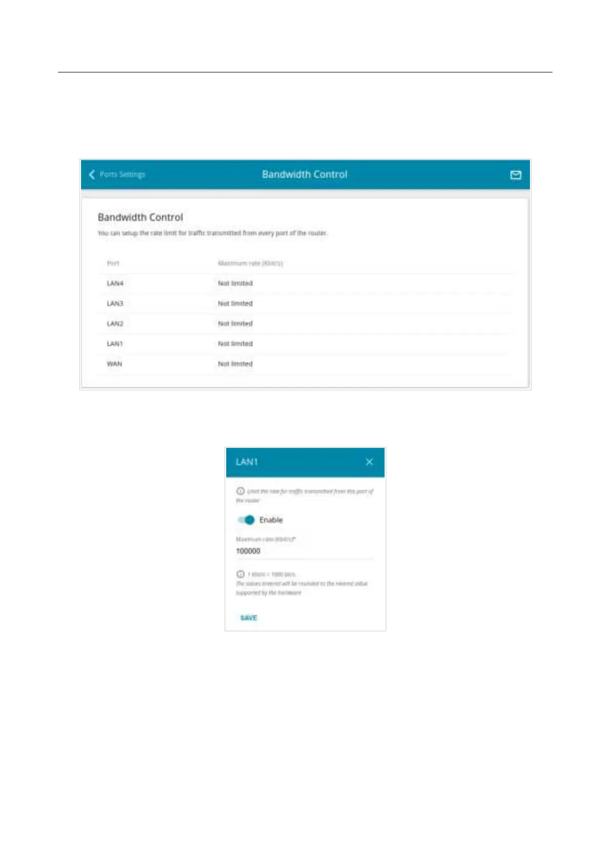 transmitted traffic rate for this port in the Maximum rate field. Then click the SAVE button.