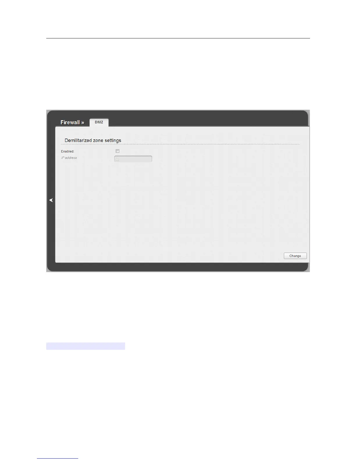 To disable the DMZ, deselect the Enabled checkbox and click the Change button.