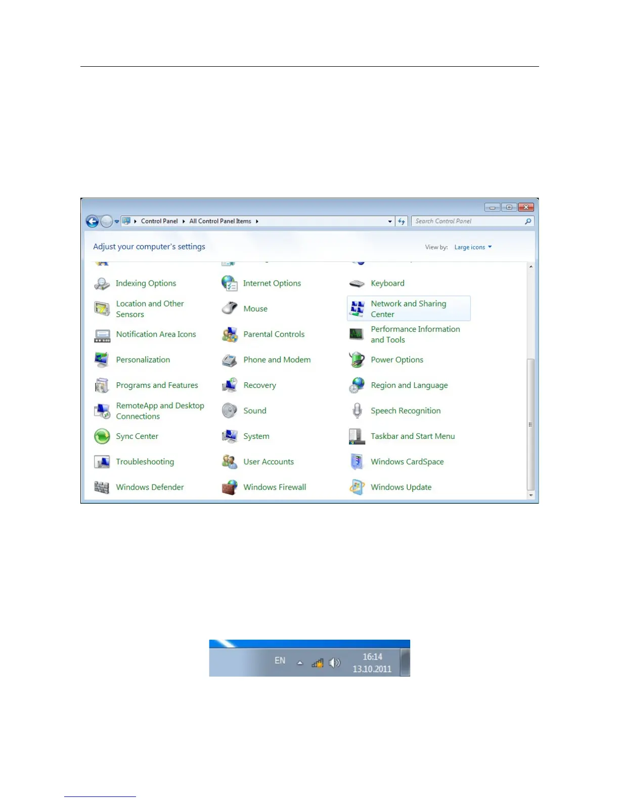 2. Select the Network and Sharing Center section. (If the Control Panel has the category