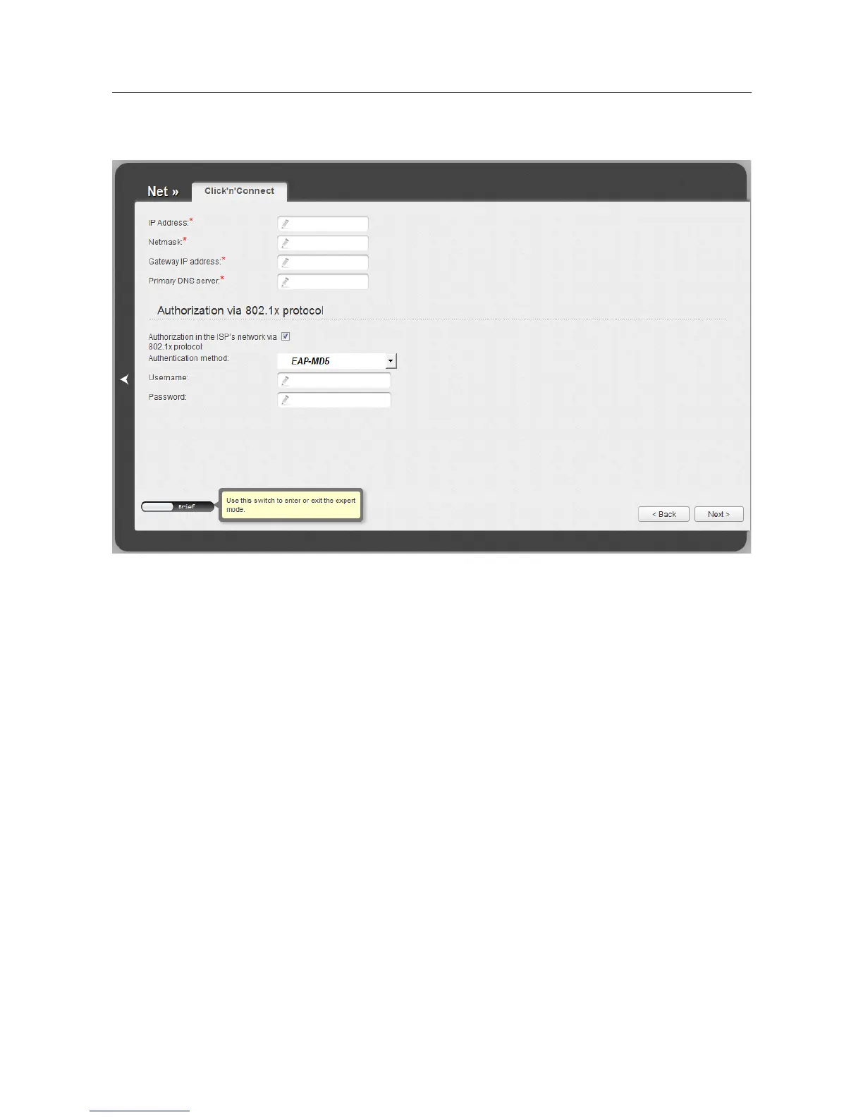 If your wired ISP uses authorization via the 802.1x protocol, in the Authorization via 802.1x