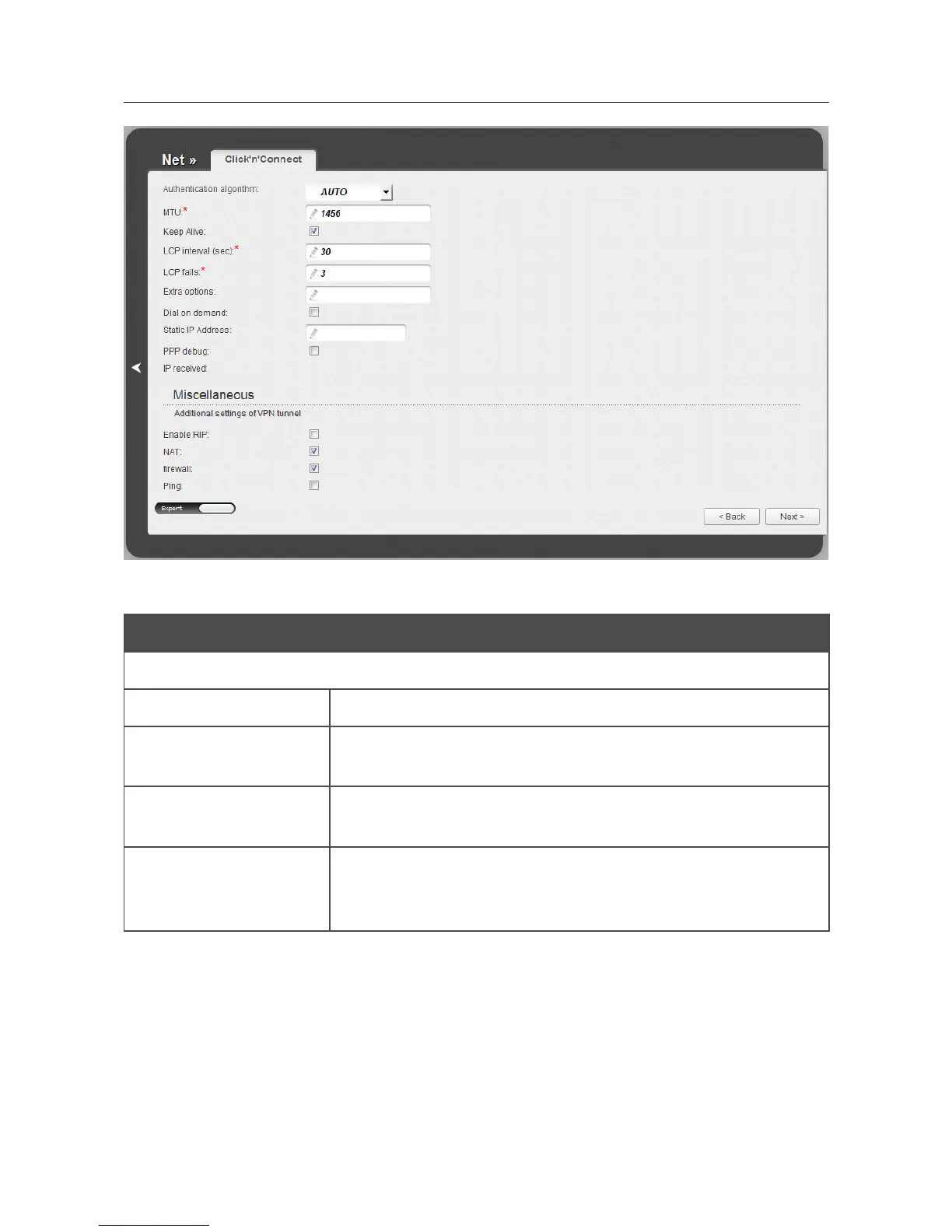 Figure 49. Configuring PPTP + Static IP WAN connection. The expert settings mode. The Miscellaneous