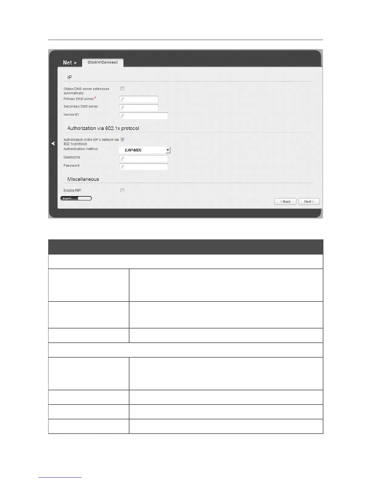 Figure 52. Configuring PPTP + Dynamic IP WAN connection. The expert settings mode. The IP and