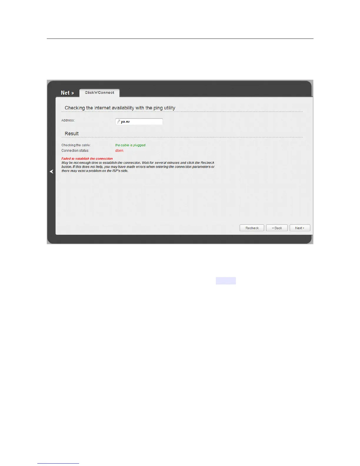 displayed. To recheck the status of the WAN connection, enter the IP address or name of a host in