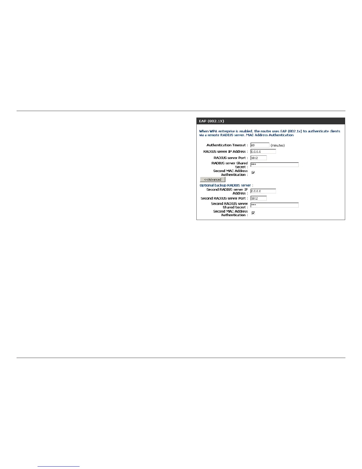 11. Click Advanced to enter settings for a secondary RADIUS Server.