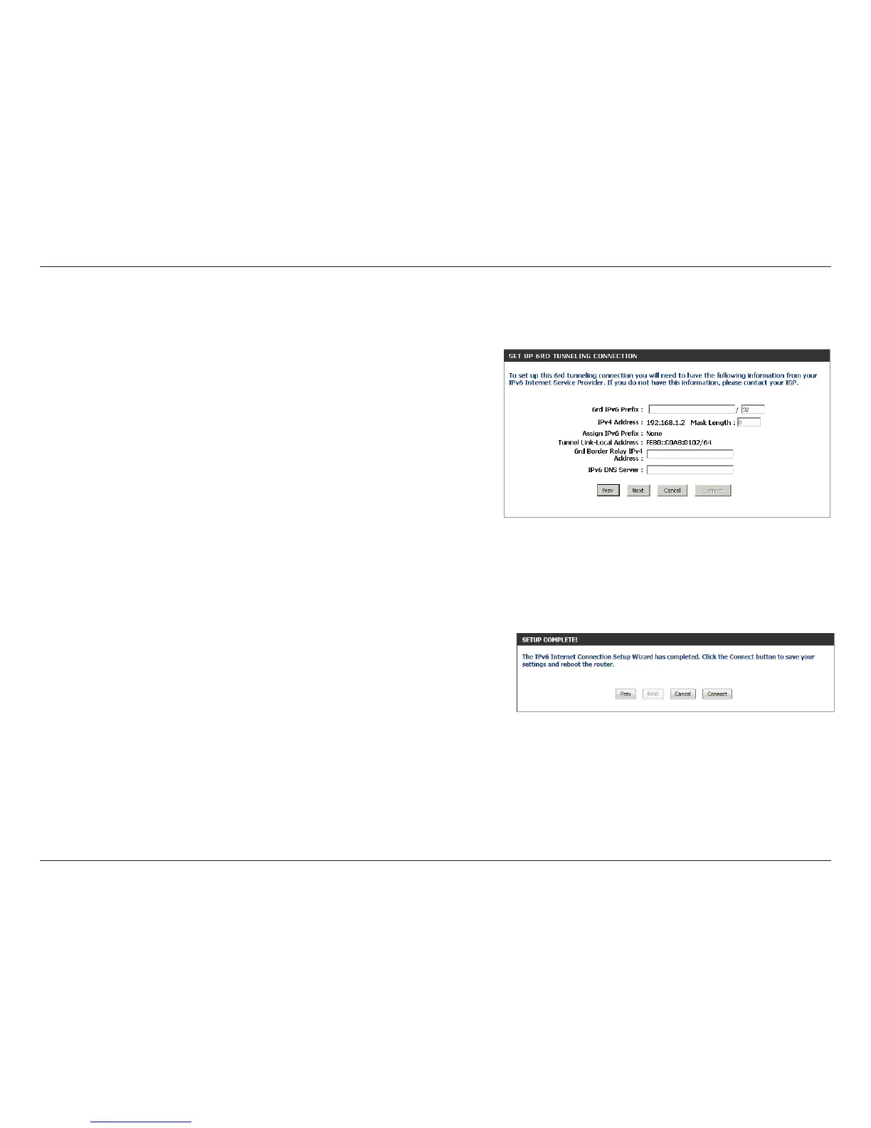 After selecting the Tunneling Connection (6rd) option, the user can congure the IPv6 6rd connection settings.