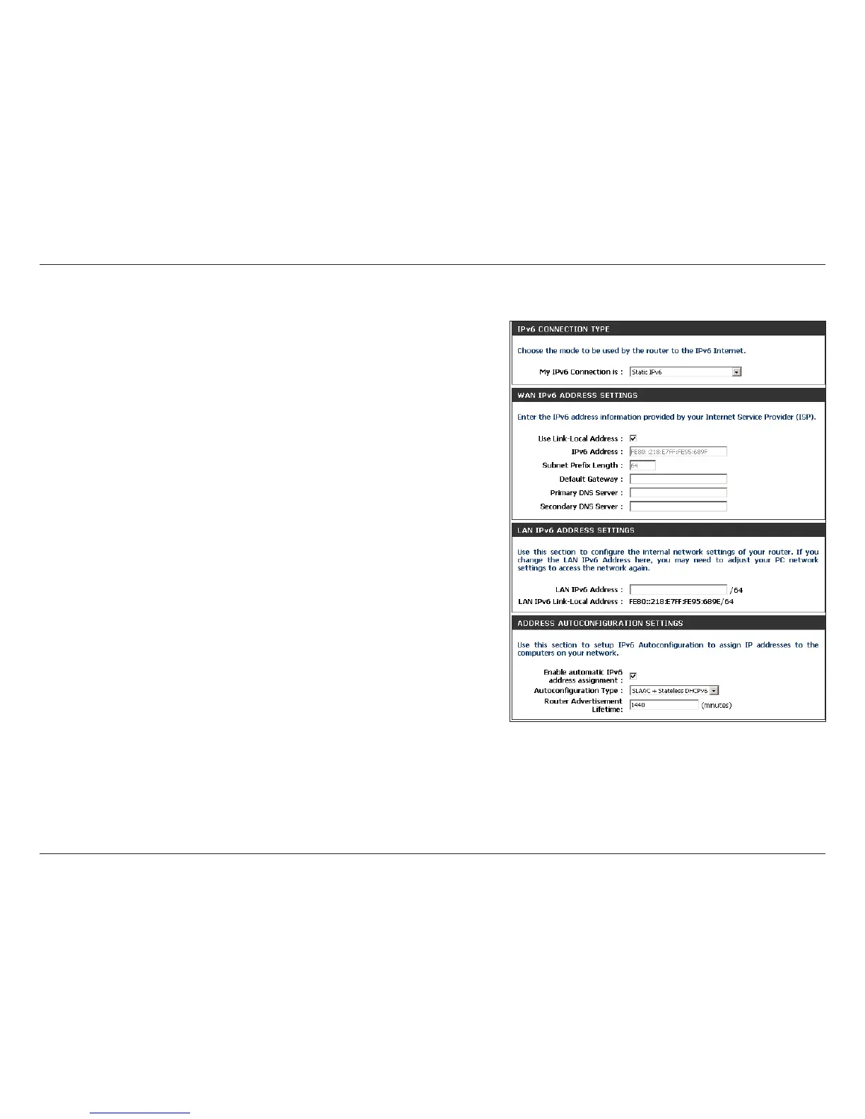 Enter the LAN (local) IPv6 address for the router.