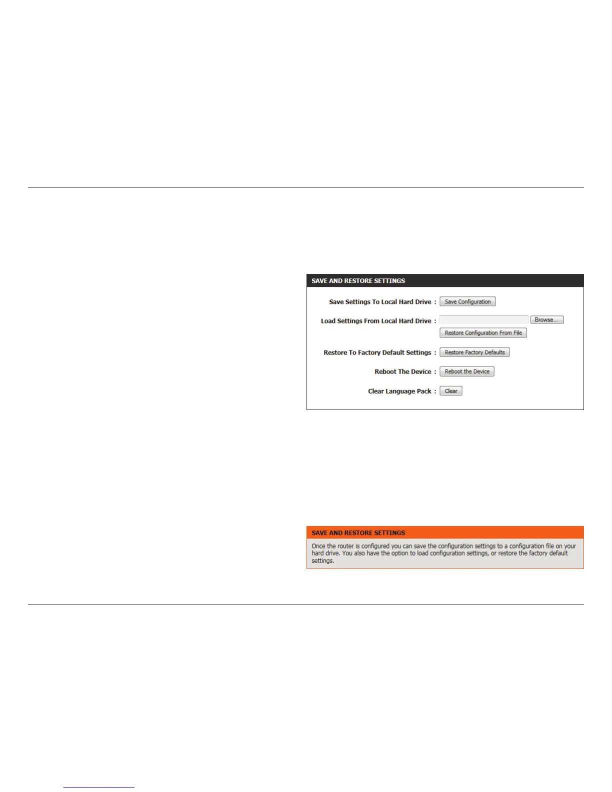 This section allows you to manage the router’s conguration settings, reboot the router, and restore the router to the factory default settings.
