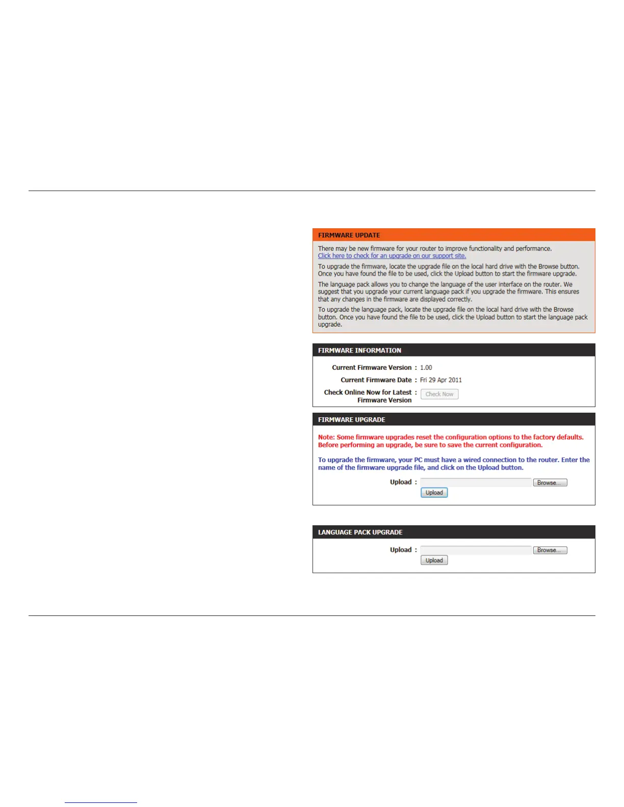 Note: Always update the rmware or language packs for this device using the wired connection. Never upgrade using a wireless connection.