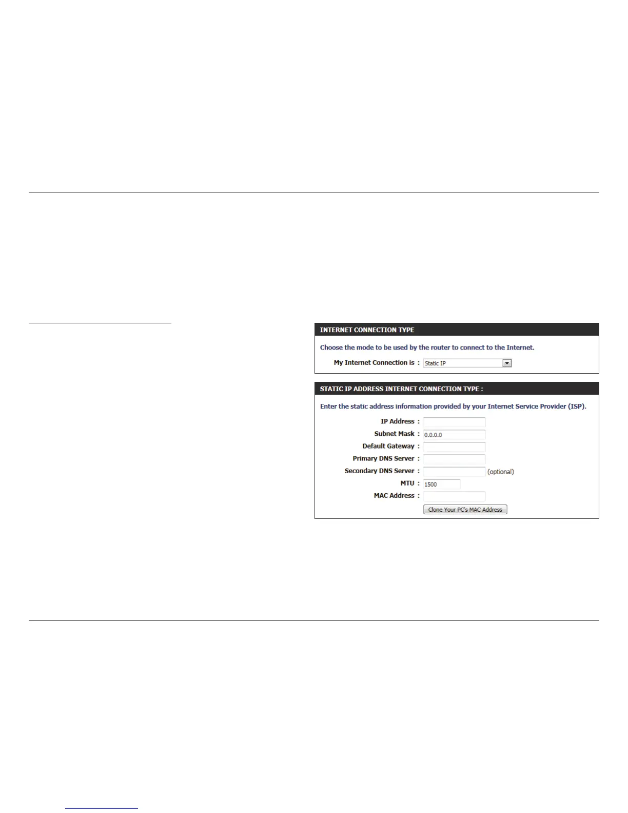 to manually congure the Static IP Internet Connection type. Normally