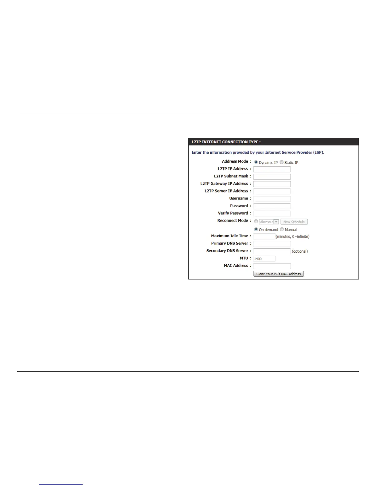 L2TP IP Address: Enter the L2TP IP address used here. This option is