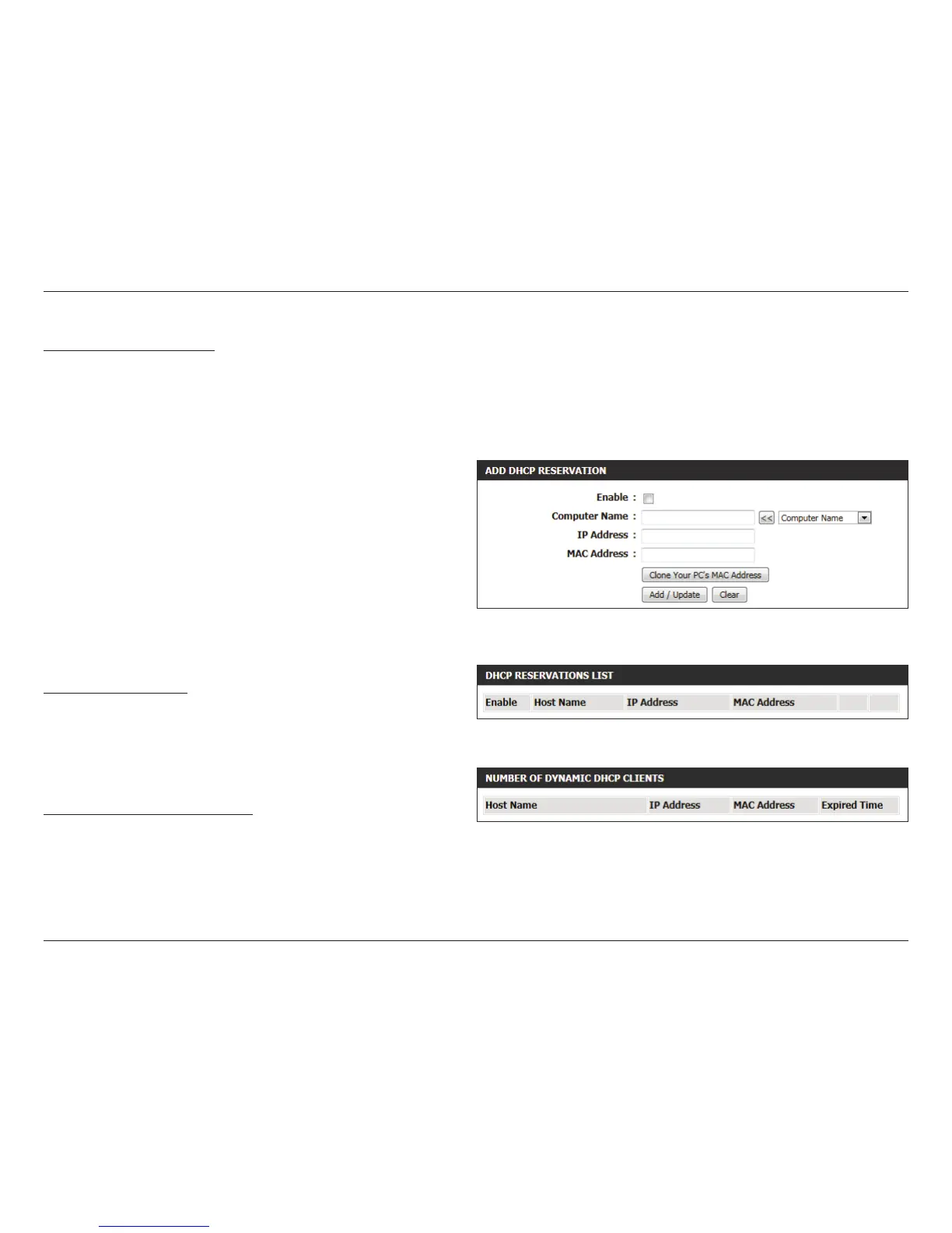 router. The D-Link router will provide the device the same IP address every time. DHCP Reservations are helpful for server computers on the local