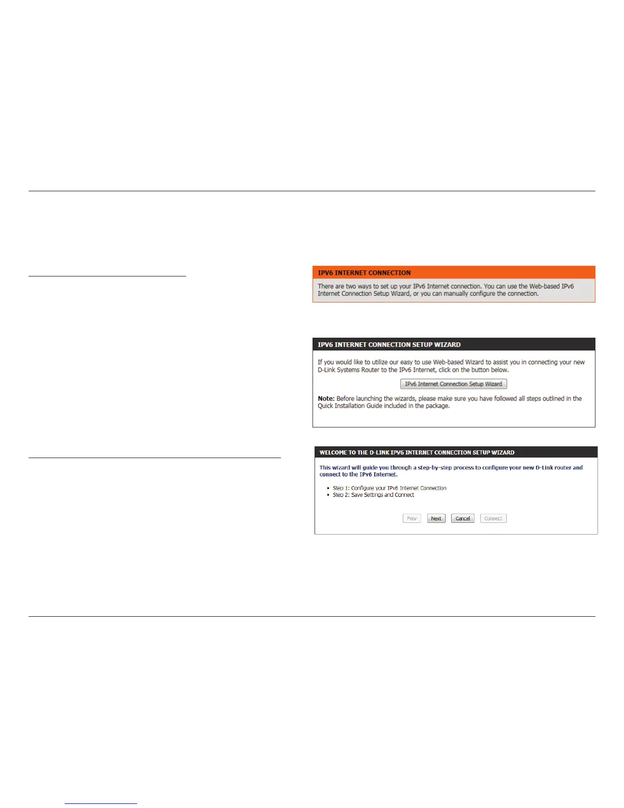 based IPv6 Internet Connection Setup Wizard, or you can manually congure the connection.
