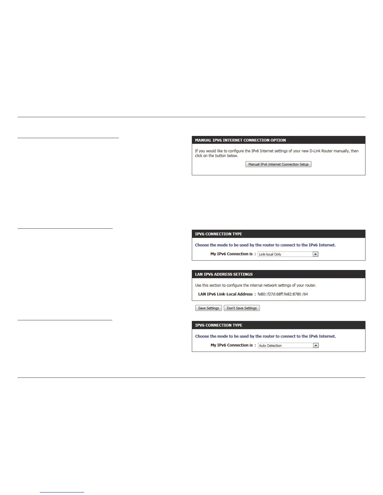 the Manual IPv6 Internet Connection Setup button to input all the