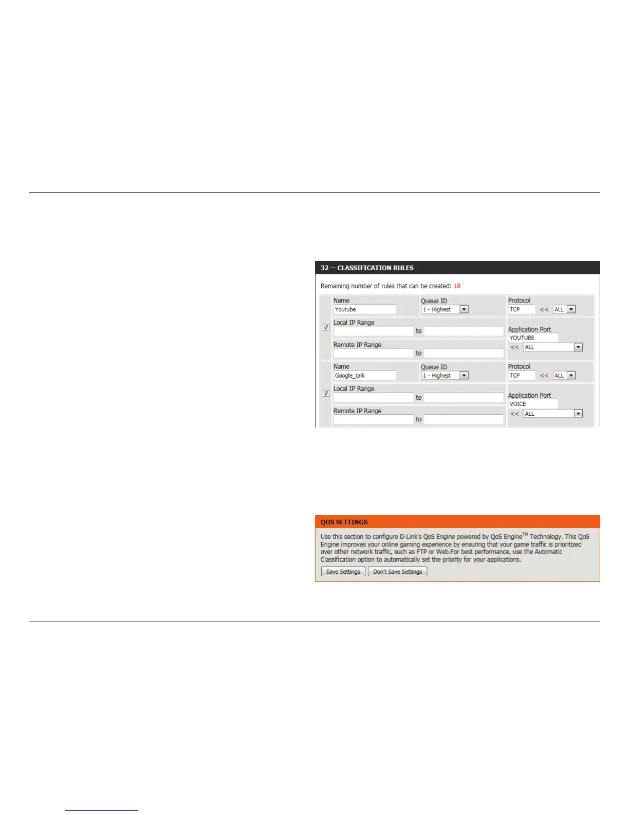 After specifying the QoS framework used, in the QoS setup section, the user can now create individual rules for scenarios that require the use of