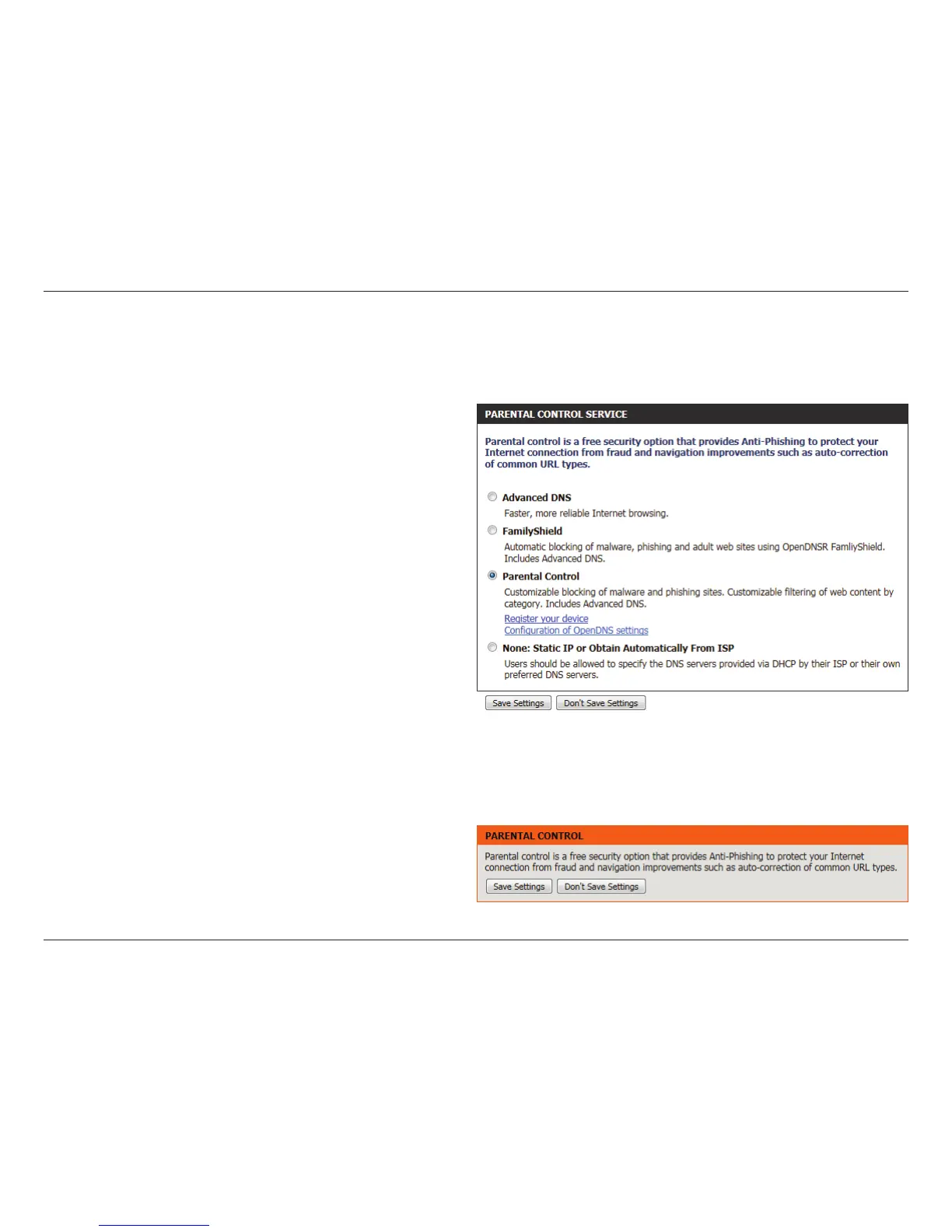 Parental Control: Select this option to enable a fast and reliable