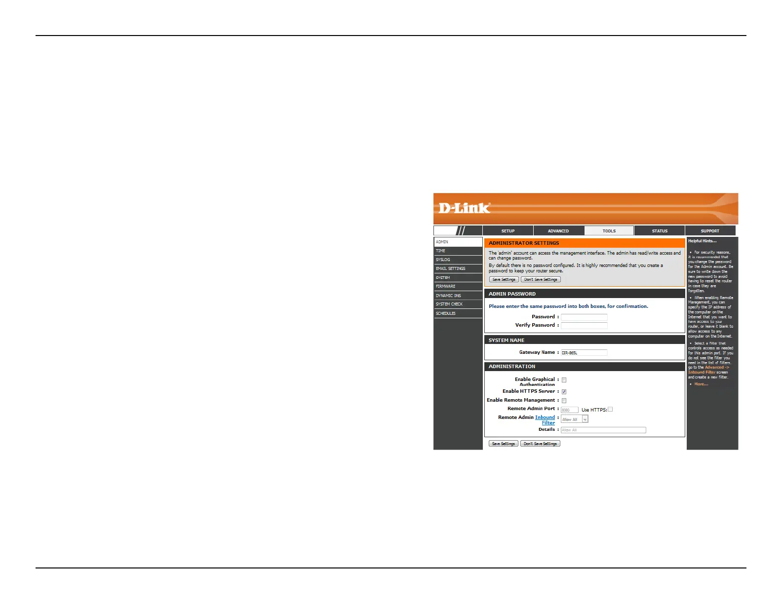This page will allow you to change the Administrator and User passwords. You can also enable Remote Management. There are