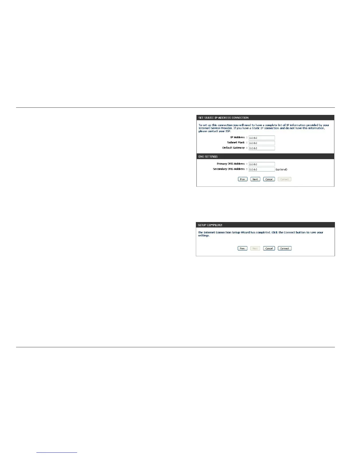 If you selected Static, enter the IP Address and DNS settings