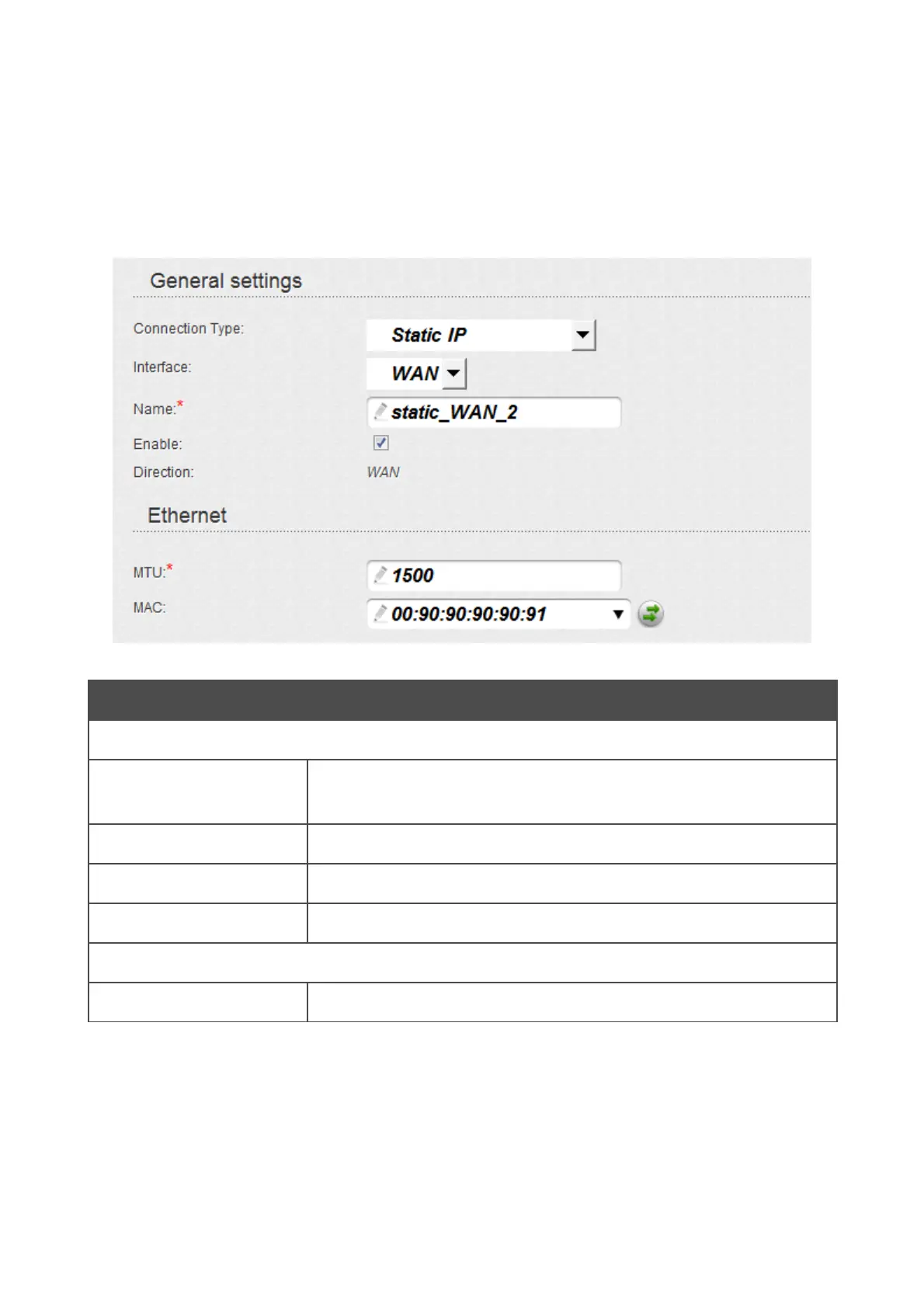 To create a connection of the Static IP type, click the Add button on the Net / WAN page. On the